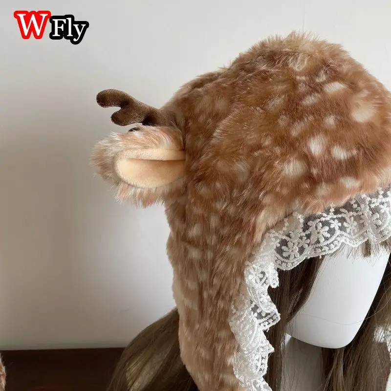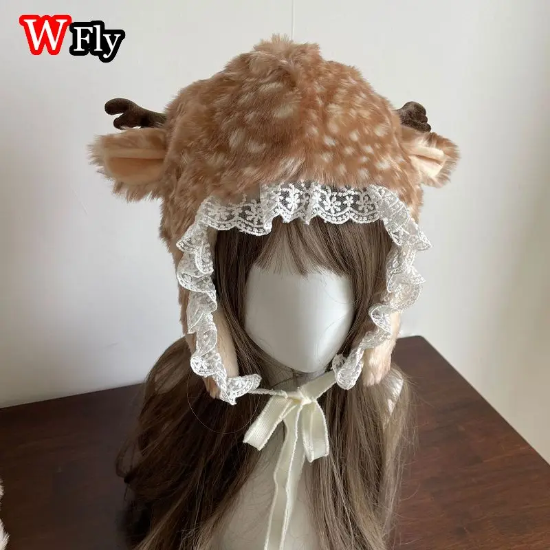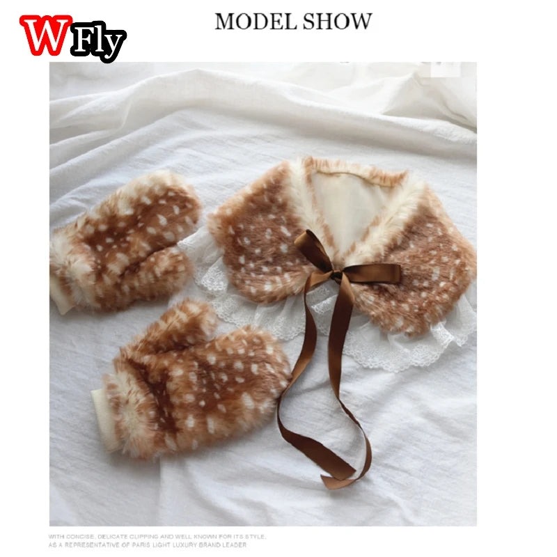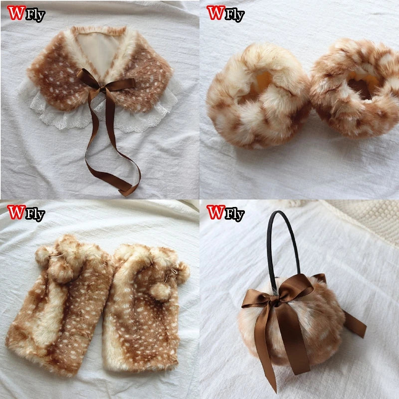 Subculture Y2K GIRL Spicy Girls Handmade Gothic Lolita Harajuku hairy Cute Deer Christmas decoration performance costume set