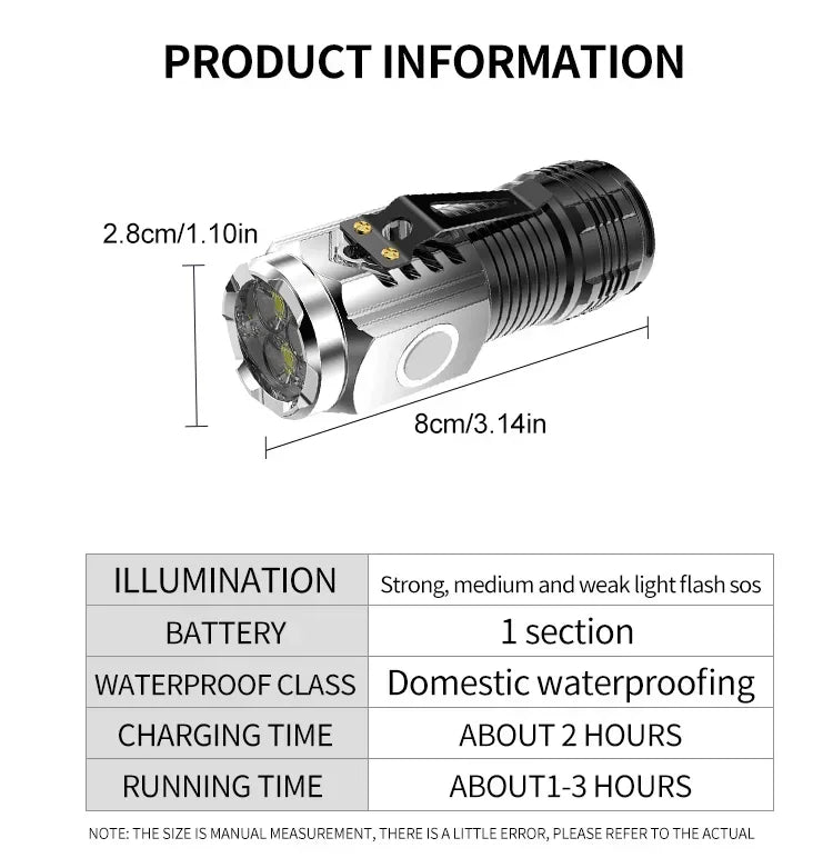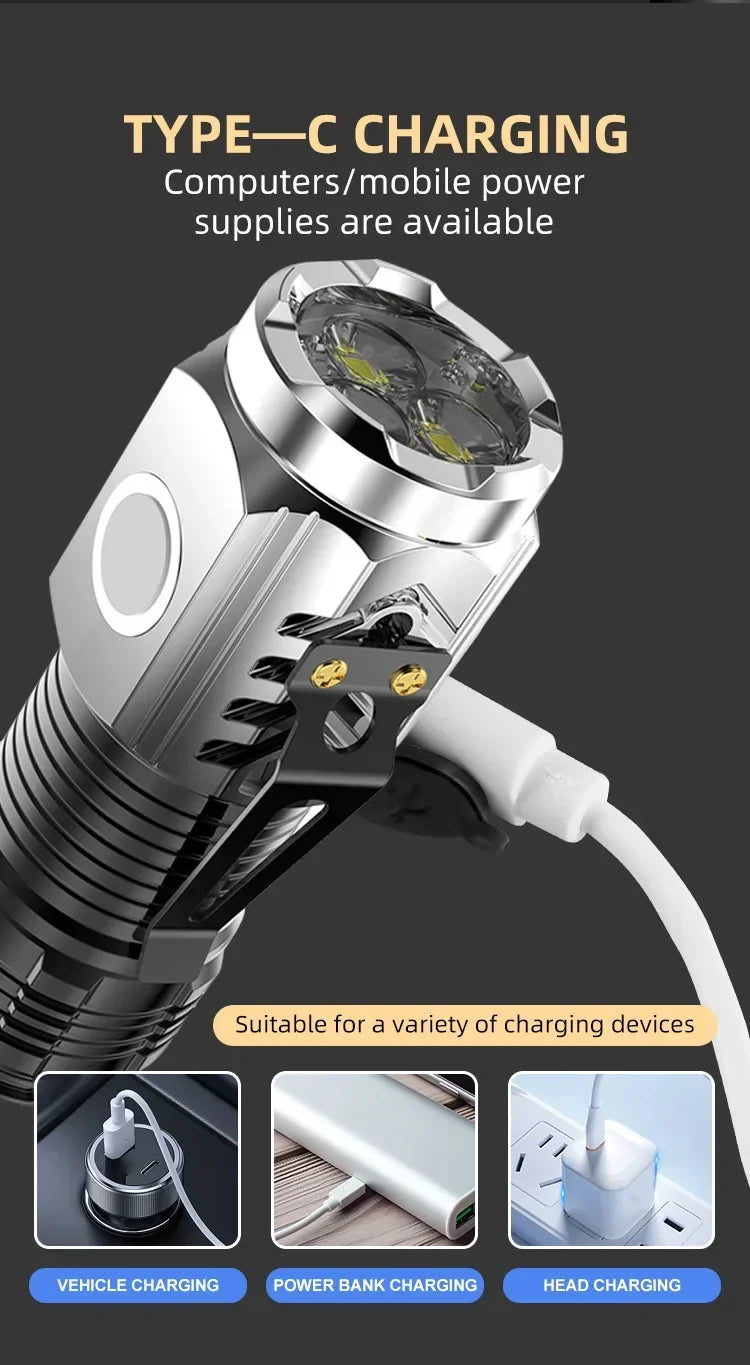 Three-Eyed Monster Mini Flash Super Power Flashlight Rechargeable Portable Outdoor Lighting Long-Range Powerful Flash Lights