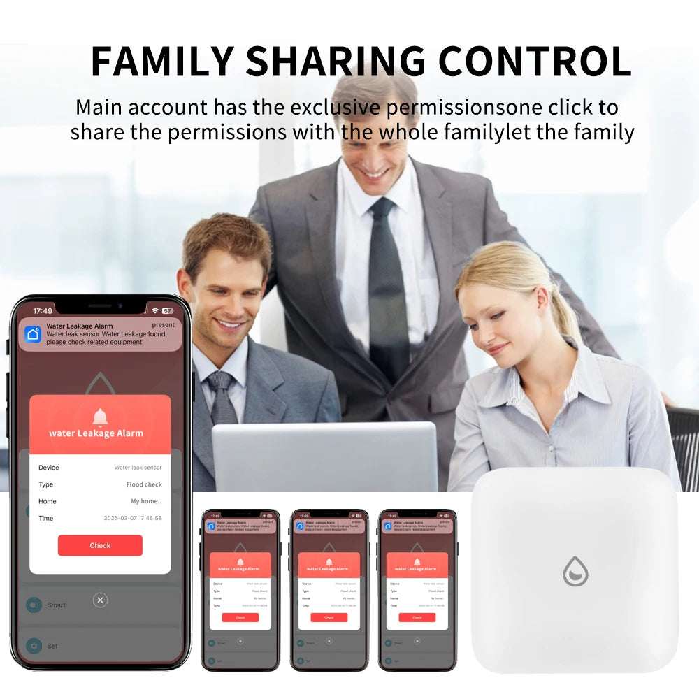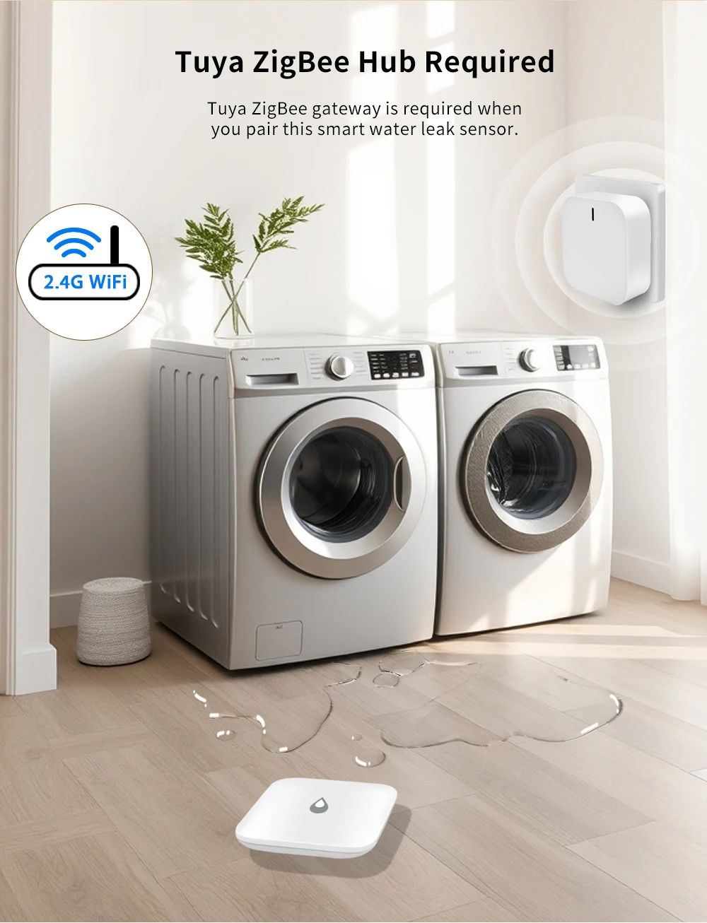 -Smart Automation Scenes:Integrate this smart water leakage sensor with other Tuya smart devices for seamlessly home automation. For instance, close the water valve in case of kitchen sink leaks or trigger window closure when water is detected on the windowsill.