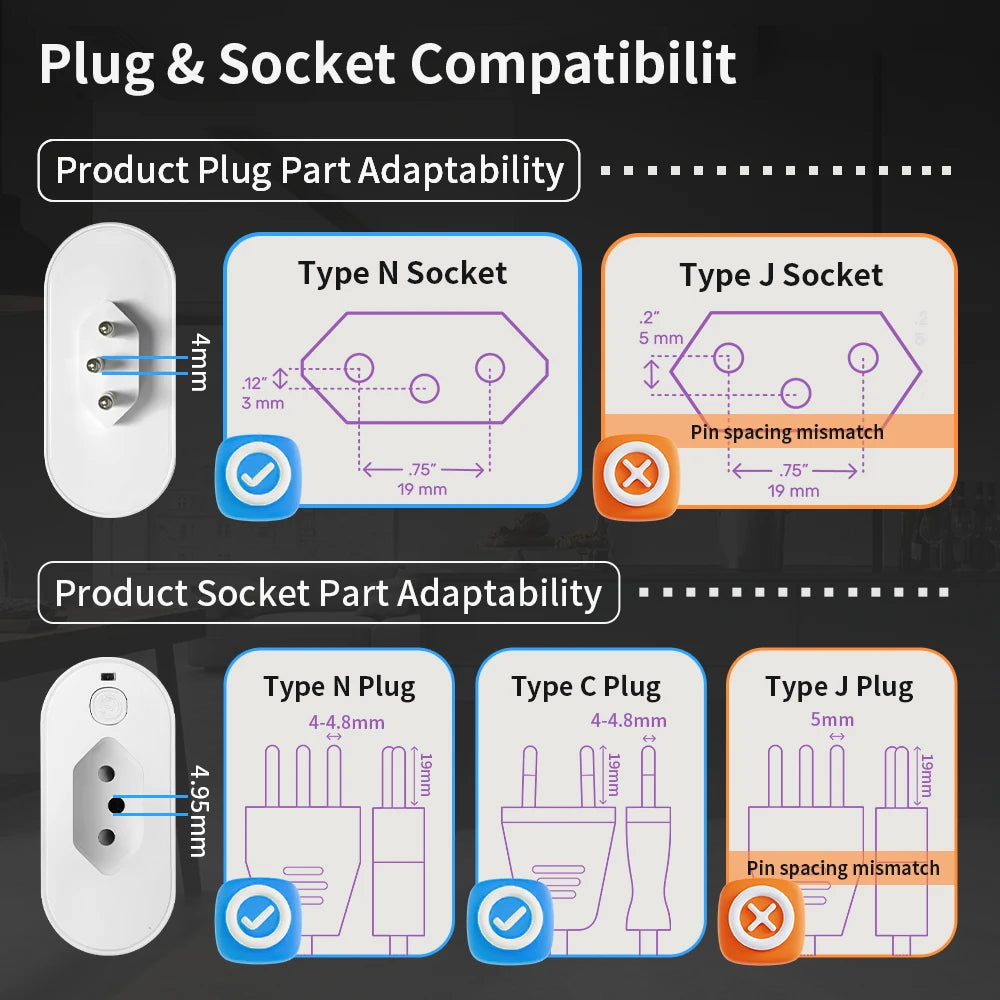 TNCE Tuya Brazil Plug 16/20A adapter, WIFI or zigbee socket with Power Monitor, Smart outlet control,Voice for Google Home Alexa