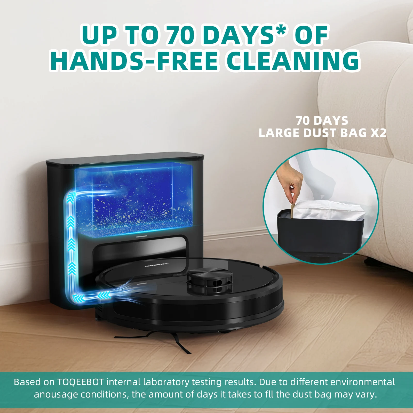 TOQEEBOT cleaning vacuum robot, 4500Pa suction power, 2.5L automatic emptying station, laser radar navigation, Wifi/app/Alexa