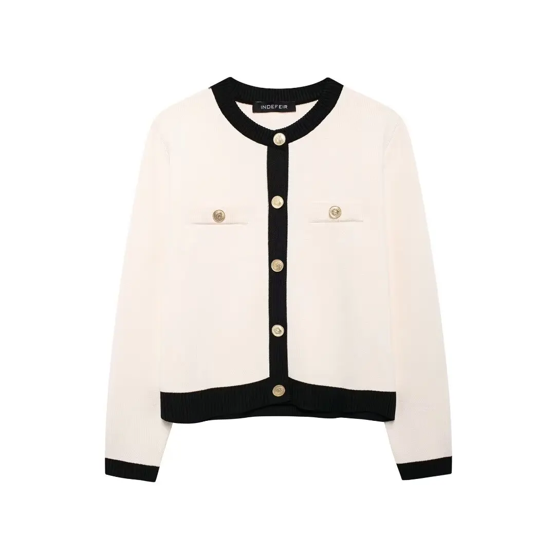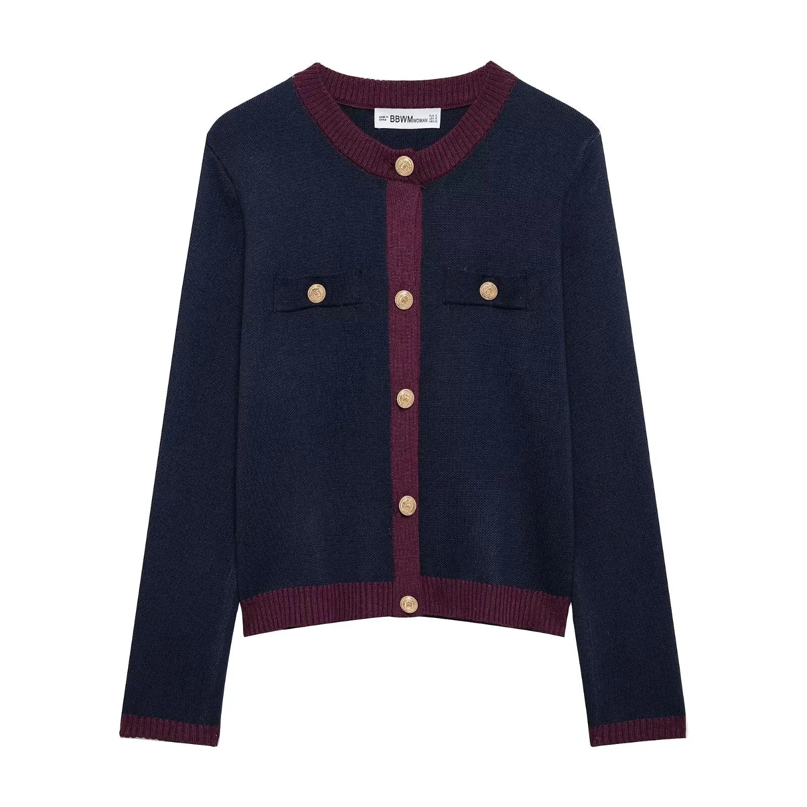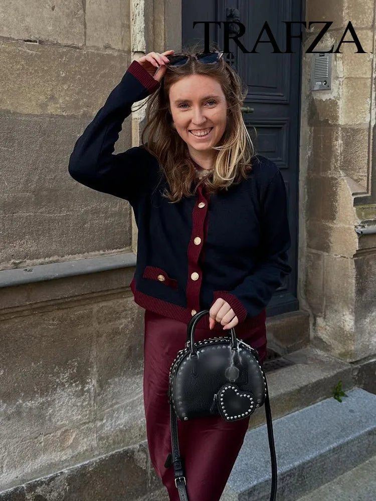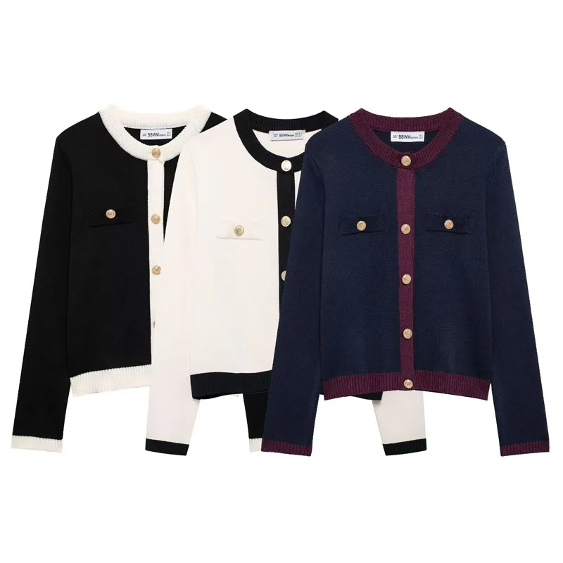 TRAFZA Autumn Fashion Women Sweater Coats Solid O-Neck Long Sleeves Pockets Buttons Single Breasted Female Casual Knitted Coat