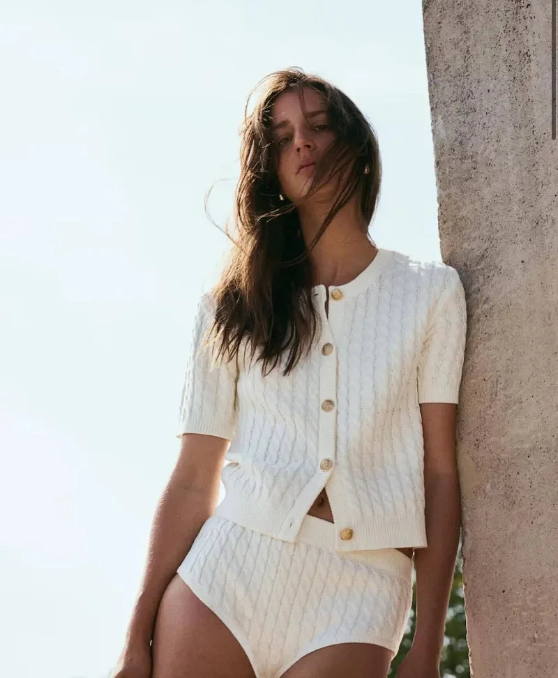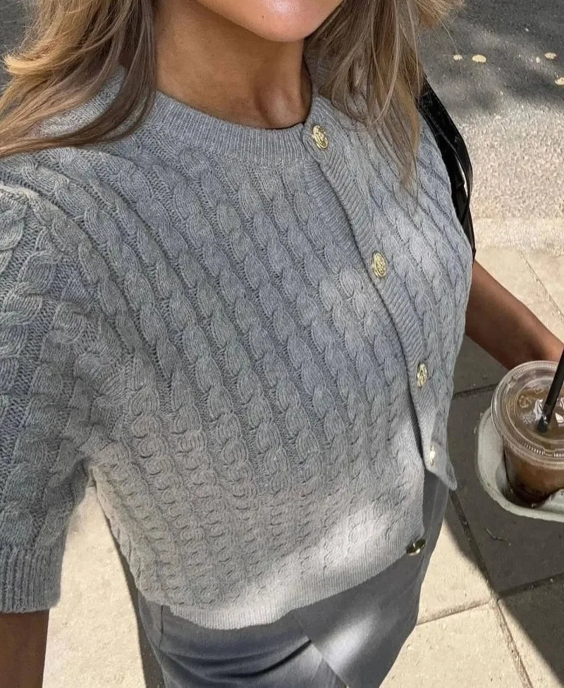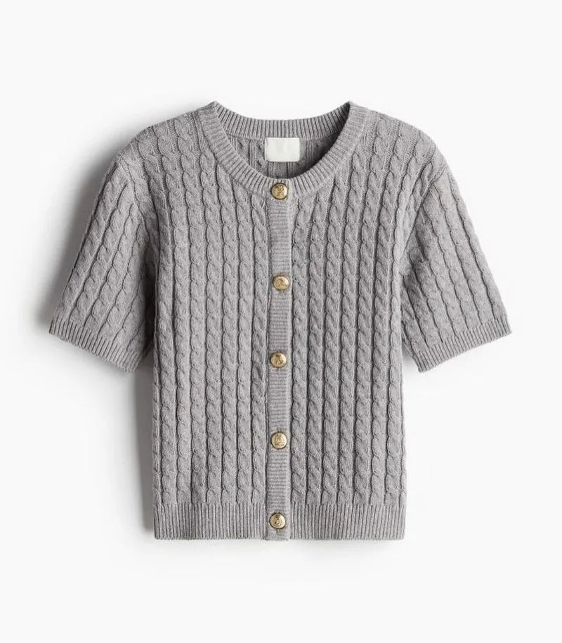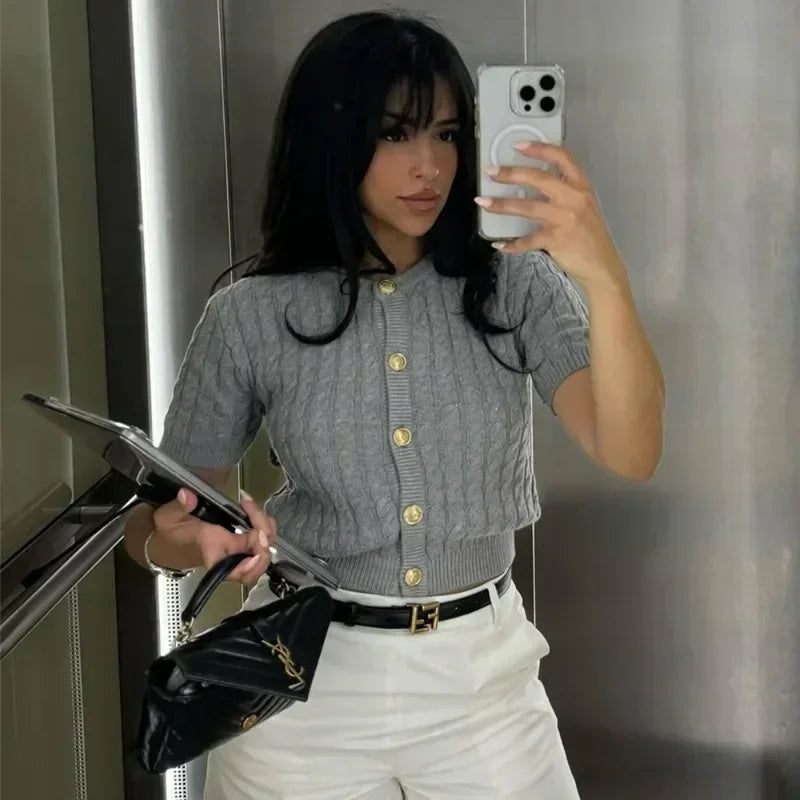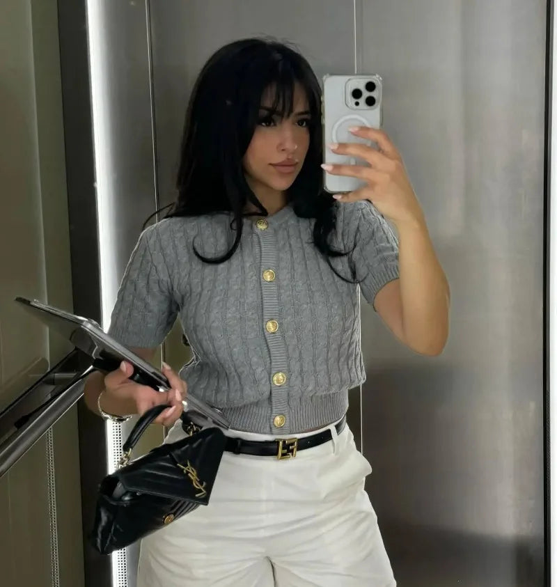 Trendix Women Winter Knit Cardigan Winter Street Fashion Patchwork Ribbed Short Sleeve Sweater Autumn Commute Knitwear Crop Top