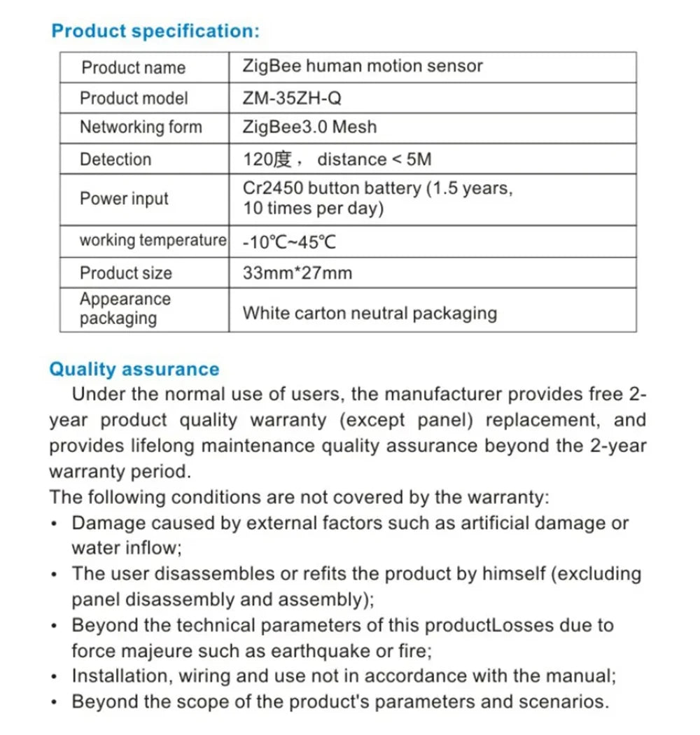 Model Number: ZigBee PIR Motion Sensor
