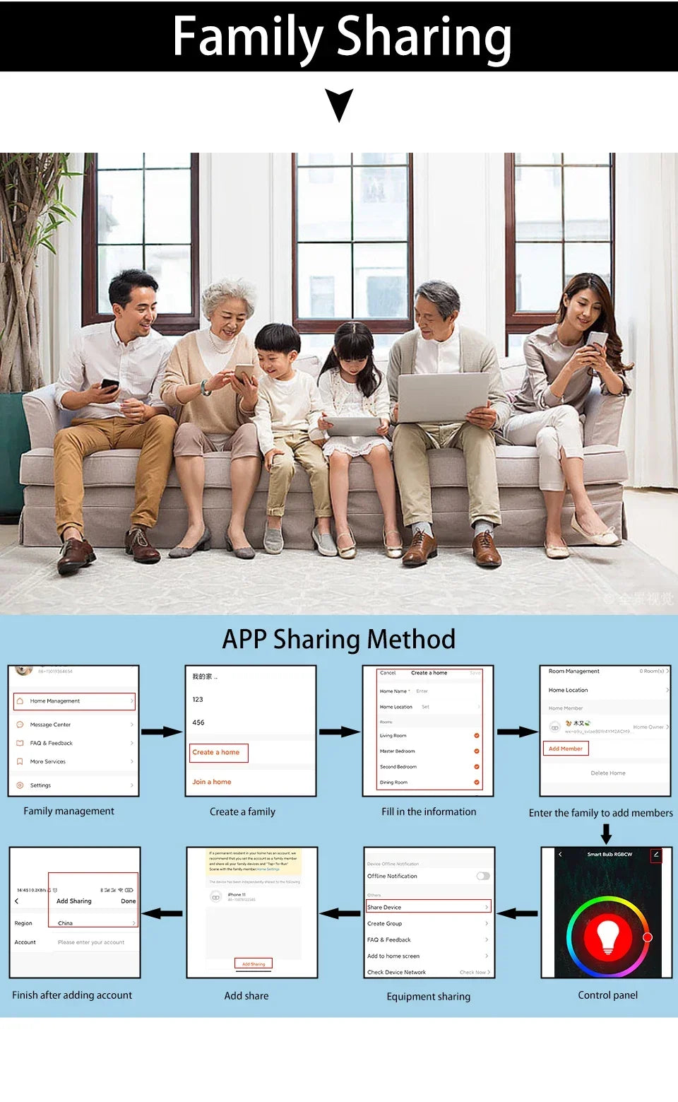 3. Remote And Group Control:Keep connecting this wifi smart light bulb with your home network (only supports 2.4GHz Wifi), you can remotely control smart light bulb on your smartphone Simulate when you leave home. Group control function allows you to control more than one smart light bulb at the same time for scene setting.