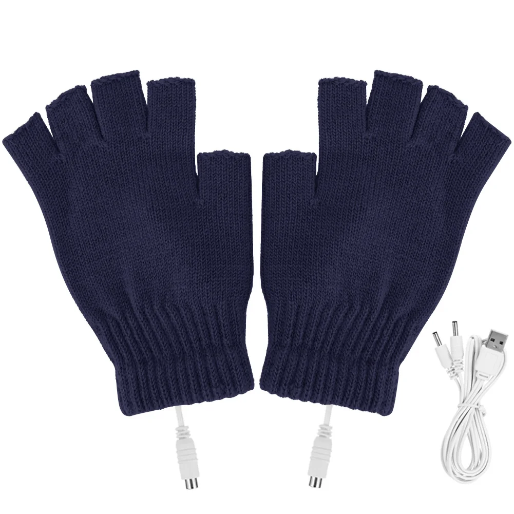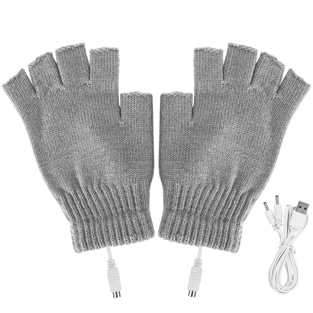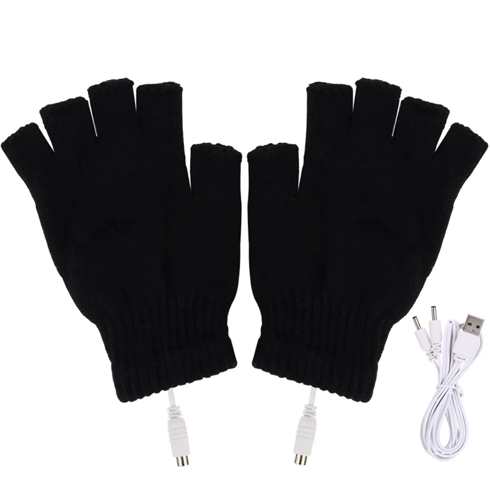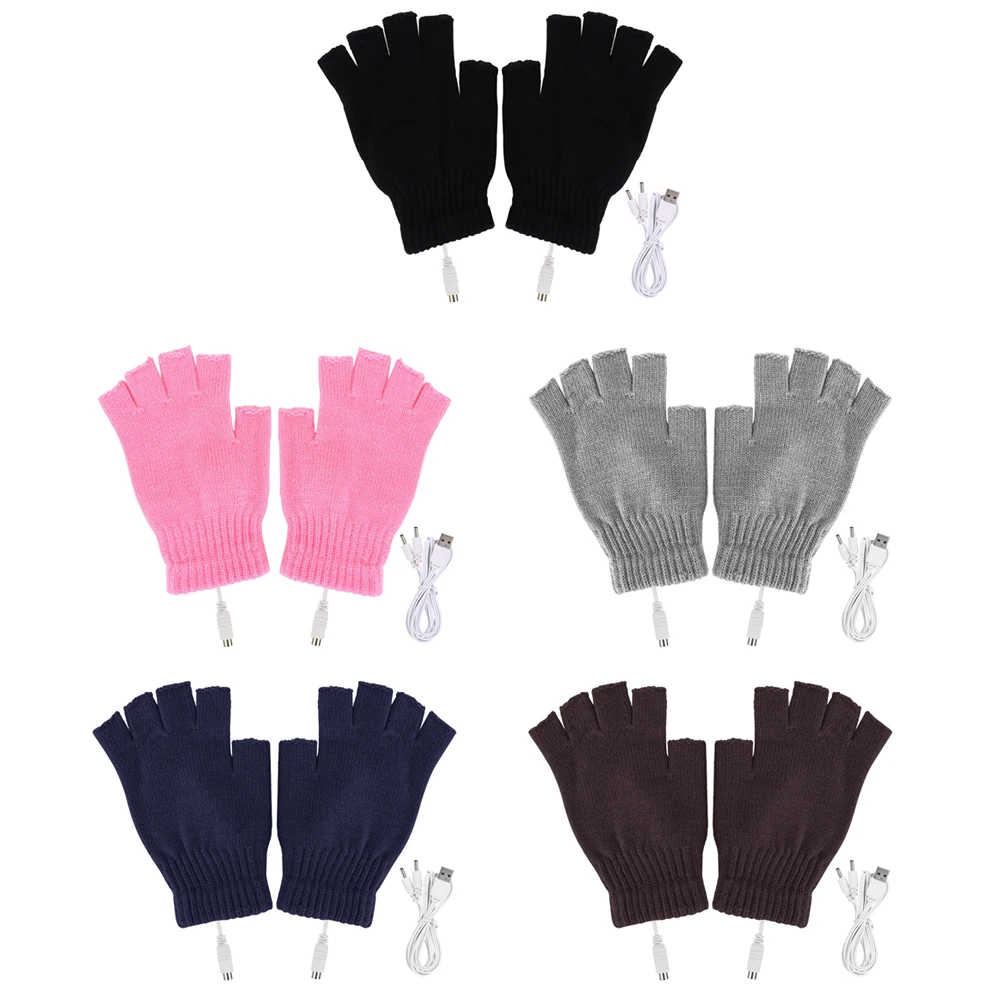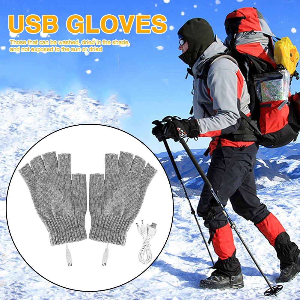 USB Heated Gloves Fingerless Knitted Wrist Glove Men Women Electric Heating Gloves Winter Hand Warmer Outdoor Skiing Accessories