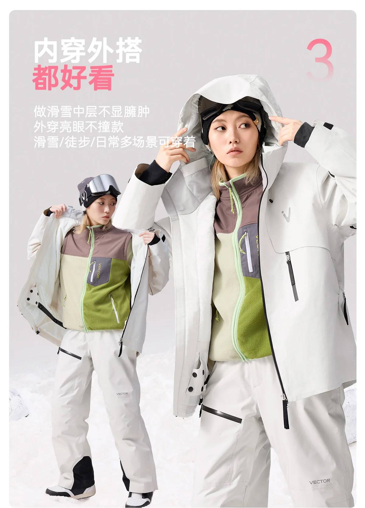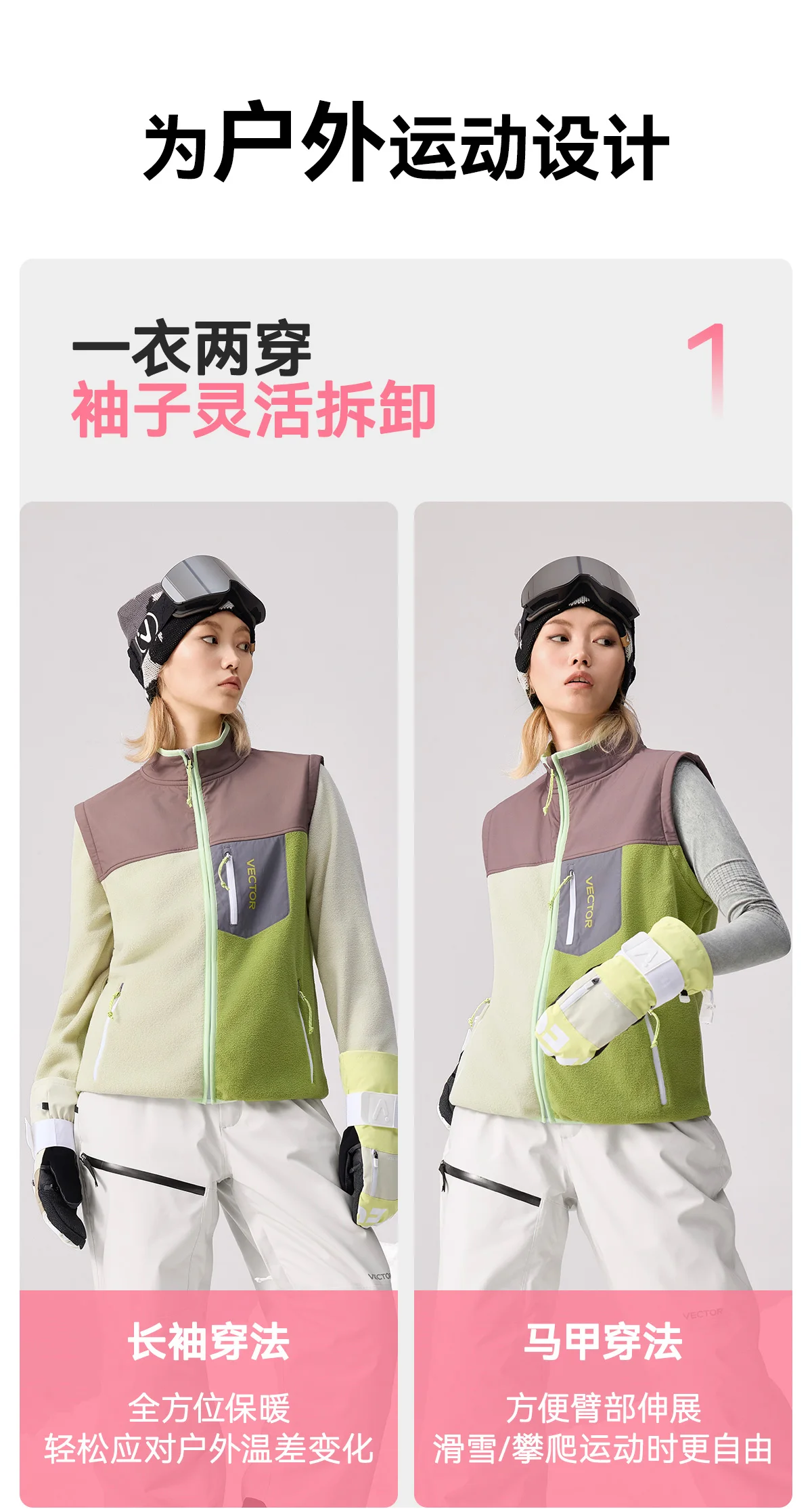 VECTOR Brand Fleece Jacket with Detachable Sleeves for Windproof Warm Anti-static Outdoor Sports Skiing Hiking Daily Wear