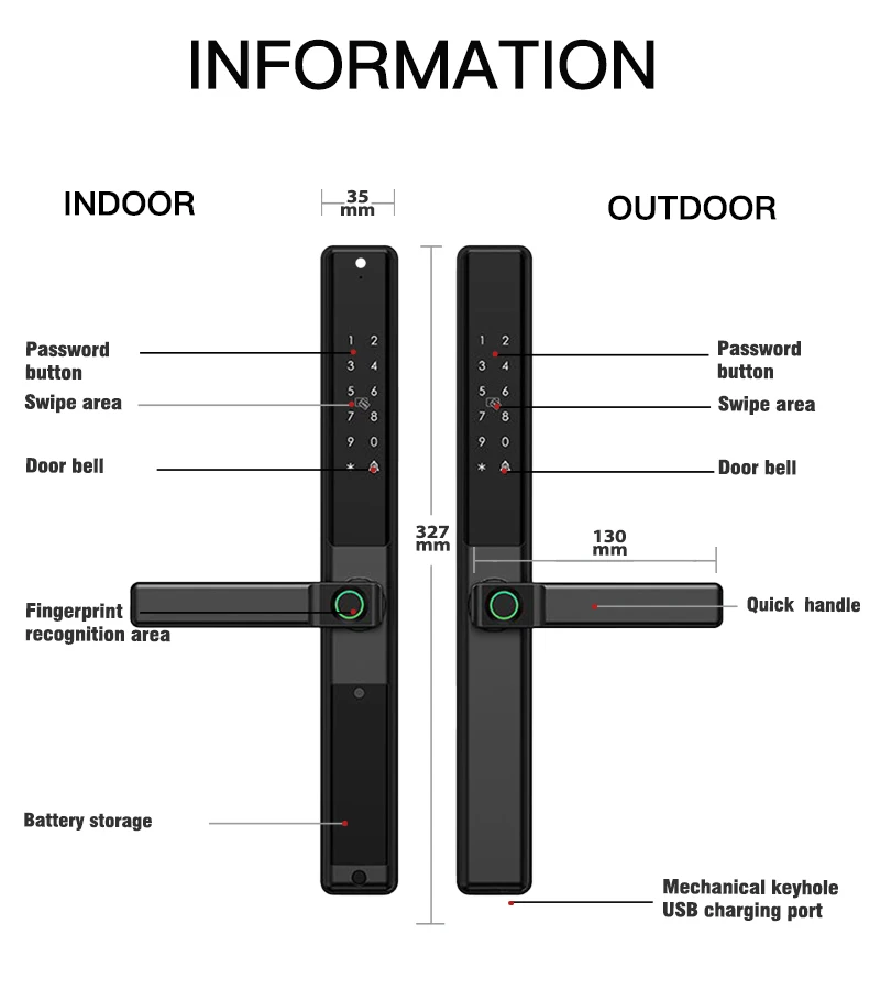 Door opening method: Unlocking is required for both indoor and outdoor unlocking
