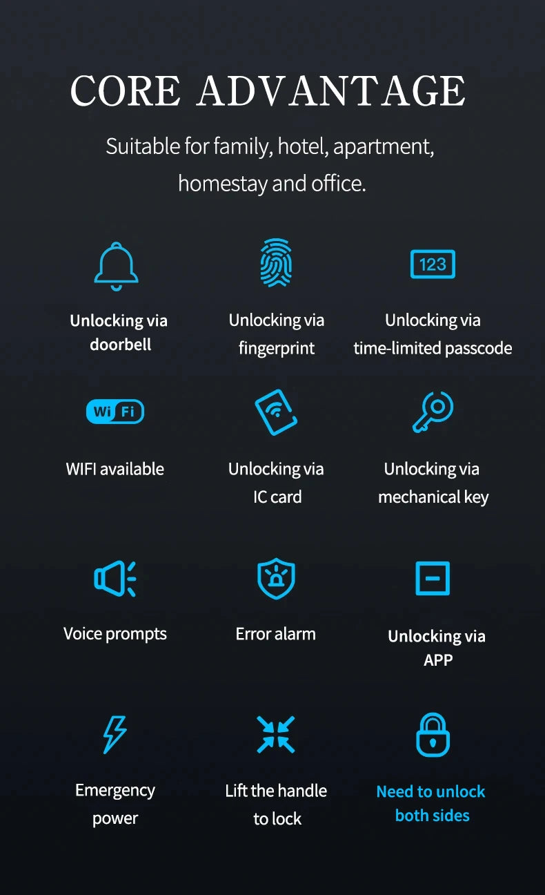 Ways To Unlock: App,Mechanical Keys,Card,WIFI,Password,FINGERPRINT