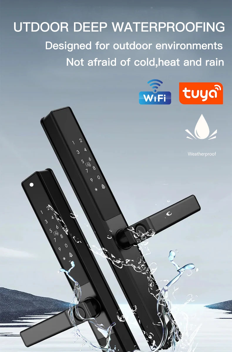 Waterproof Sliding Door Smart Lock Tuya WiFi Fingerprint Digital Code RFID Card Anti-Lock Aluminum Double-Side Electronic Lock