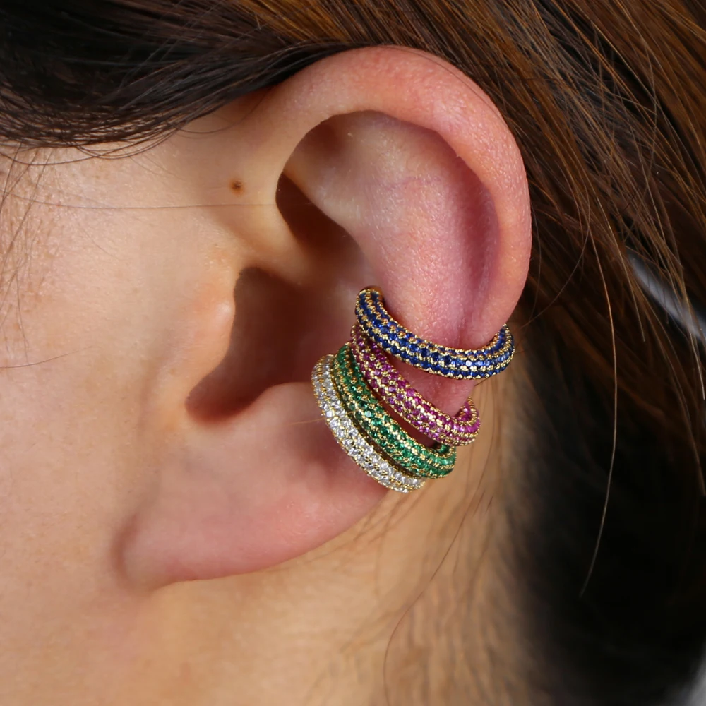 stacking white green blue red cz Circle no piercing women 1 pc bling full cz colorful ear cuff multi piercing clip on earring