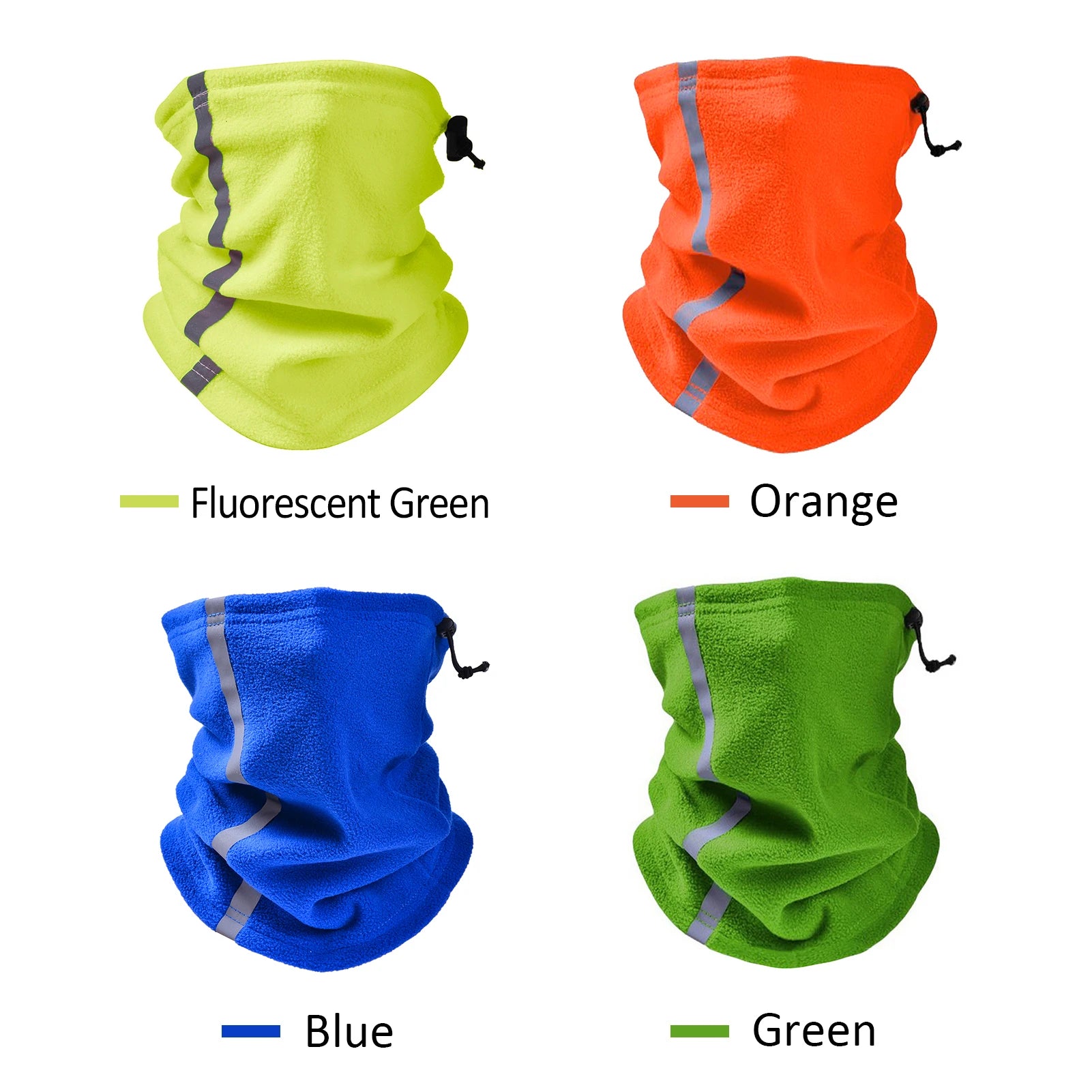 Winter Fleece Neck Warmer Reflective Neck Gaiter with Adjustable Drawstring Skiing Windproof Ski Neck Gaiter for Skiing Hiking