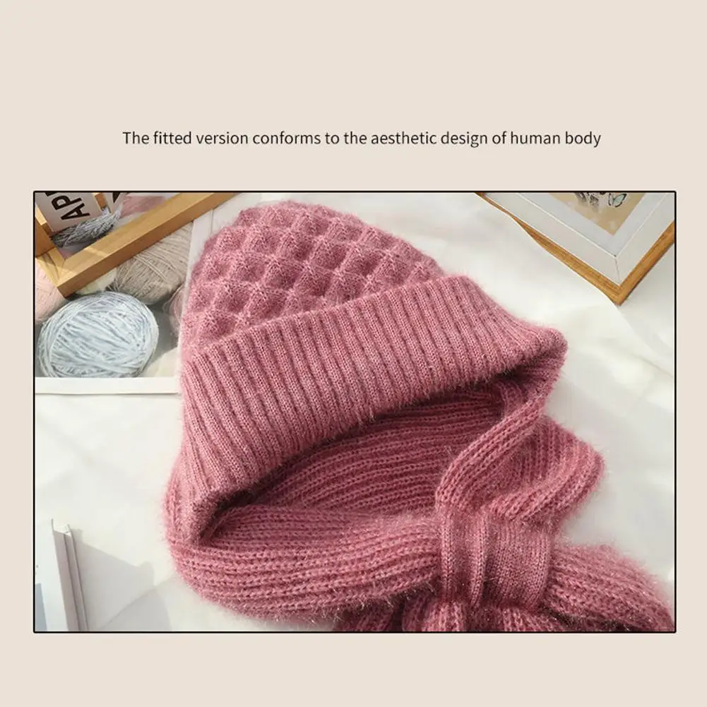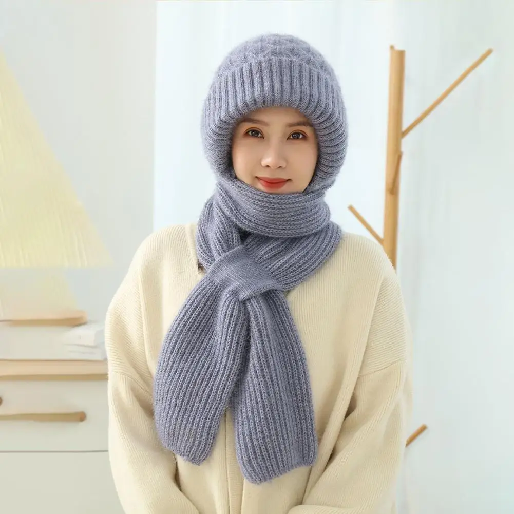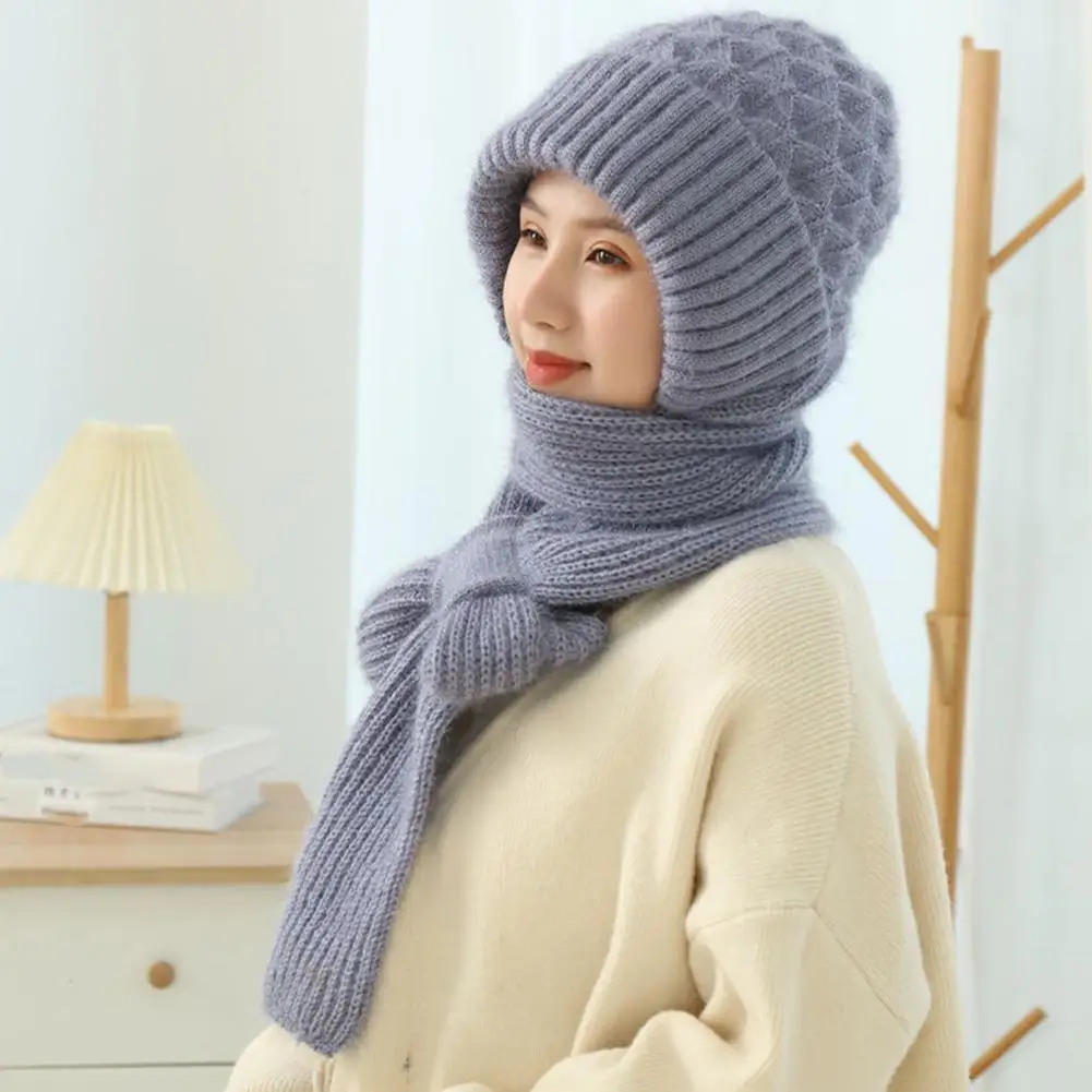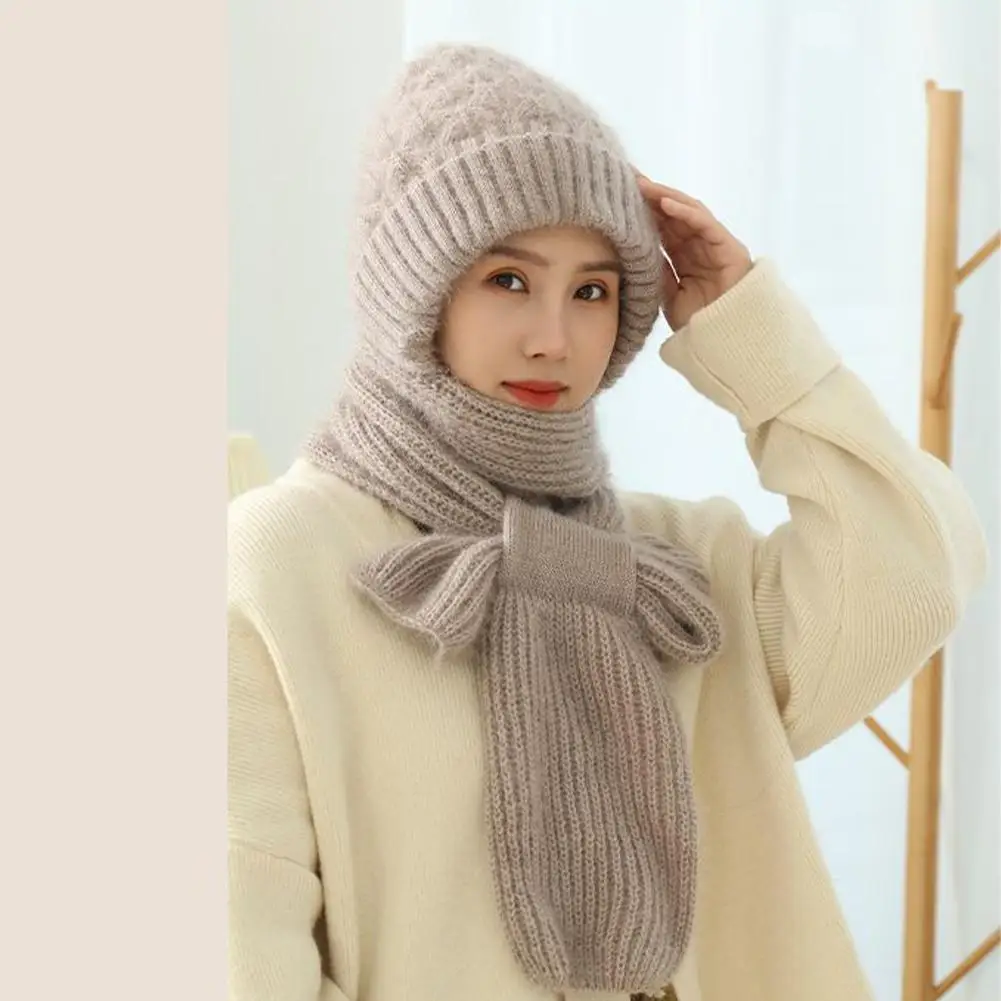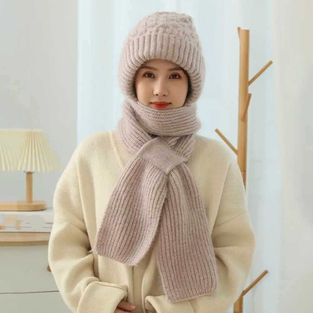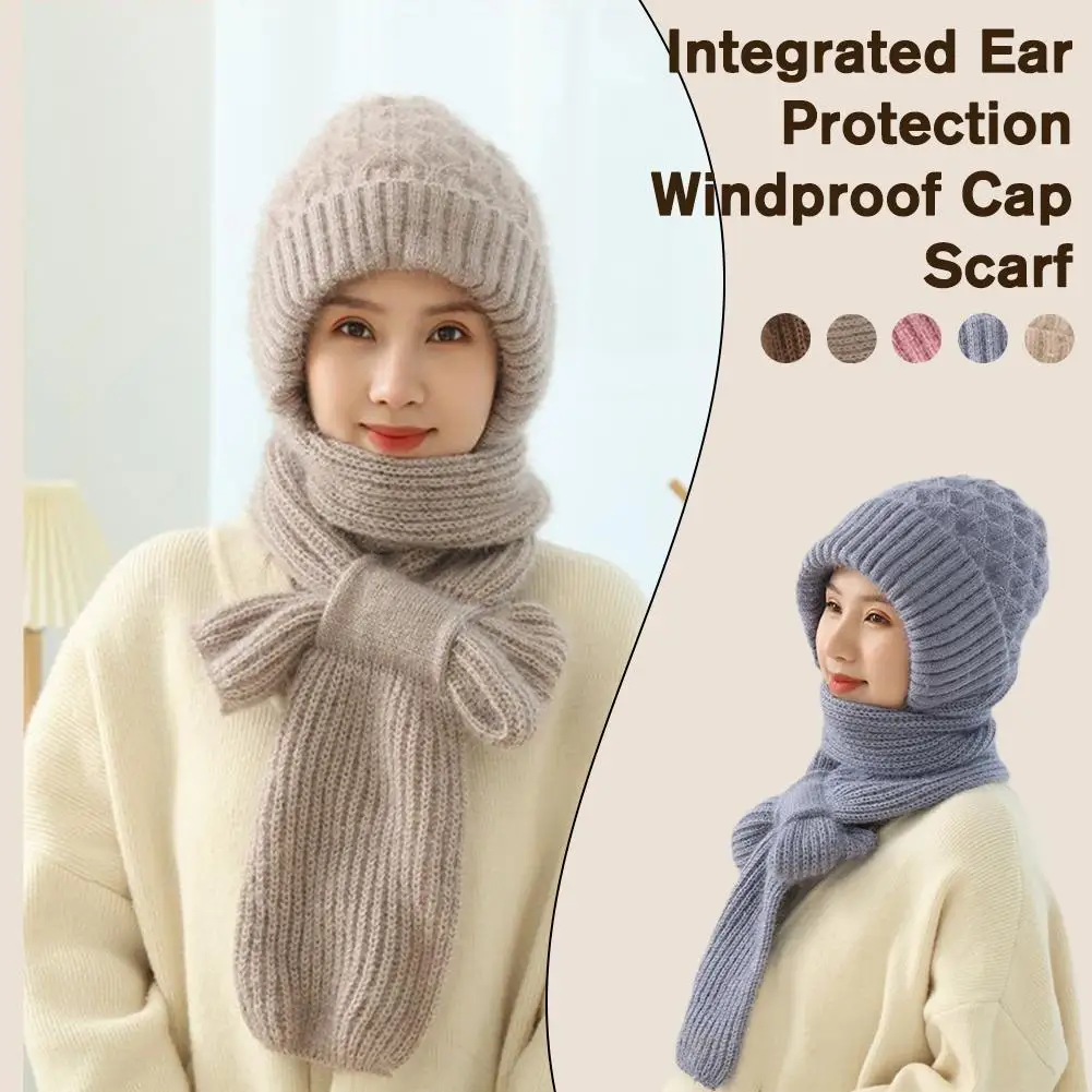 Winter Knitted Integrated Hat Scarf Set Cold Proof Ear Protection Scarf Warm Beanies Cycling Windproof Ladies Outdoor Caps