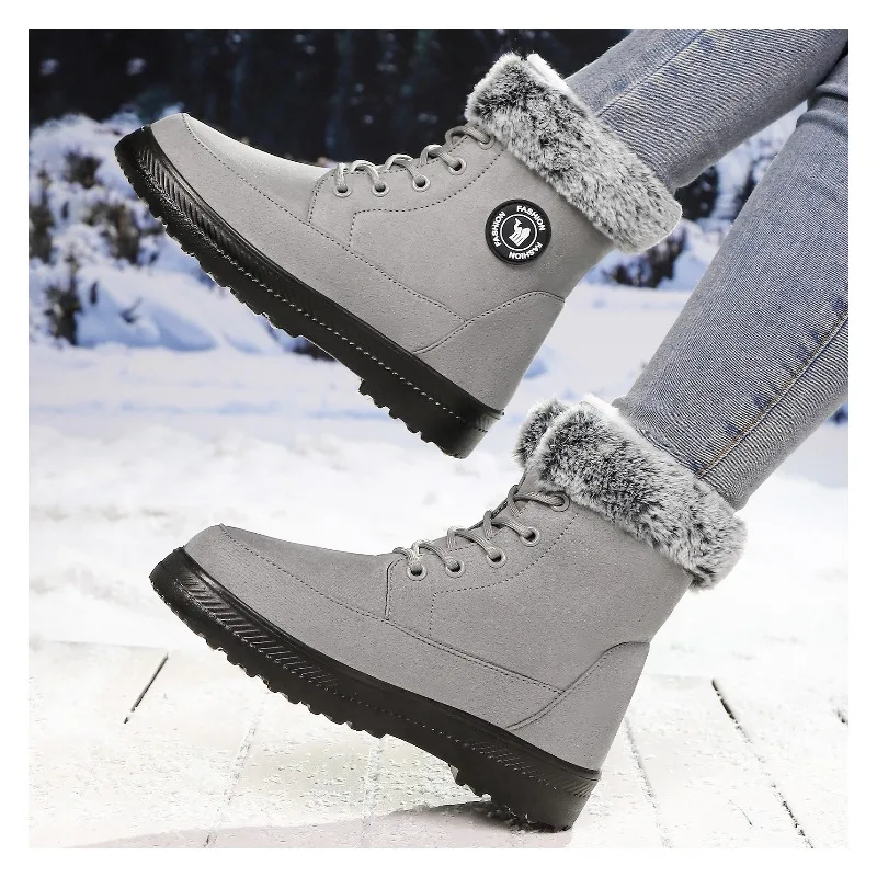 Winter New Women's Thick Plush Cotton Boots and Mid Top Warm Snow Boots Are Fashionable Trendy and Upgraded for Warmth