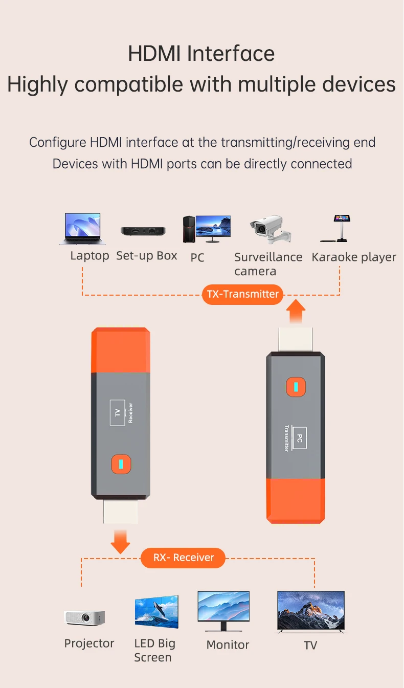 Feature 2: 50M Wireless Video Transmitter Receiver HDMI-Compatible Extender TV Stick Screen Mirror Adapter Switch DVD PC To TV Projector