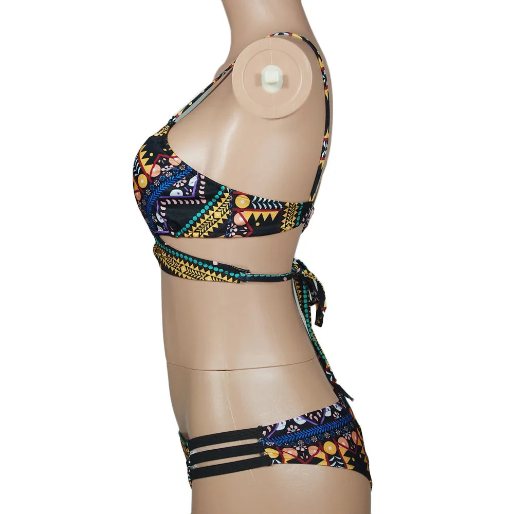 Women Bohemia Push-Up Padded Bra Beach Bikini Set Swimsuit Swimwear