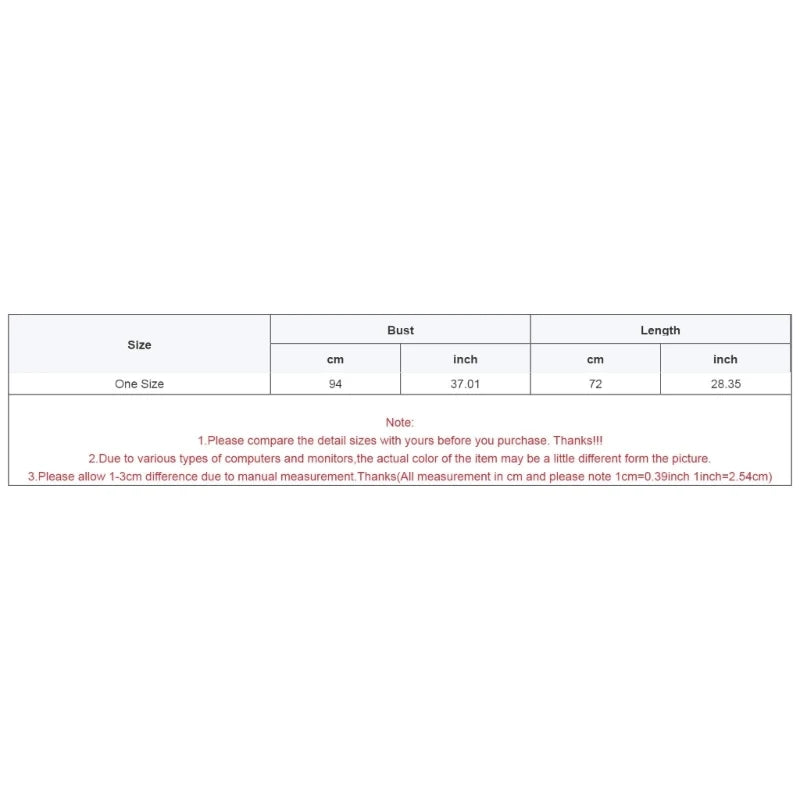 Size: Size Bust:94cm(37.01inch) Length:72cm(28.35inch)