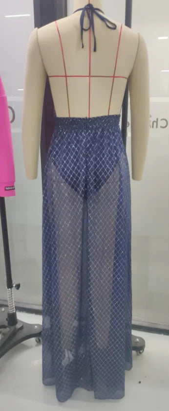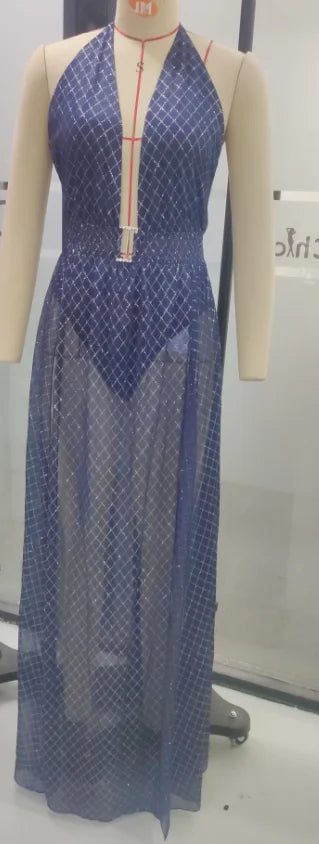 Womens Dresses Summer Sexy Split Thigh Halter Backless Deep V-Neck Sleeveless Skinny Maxi Party Prom Long Dress