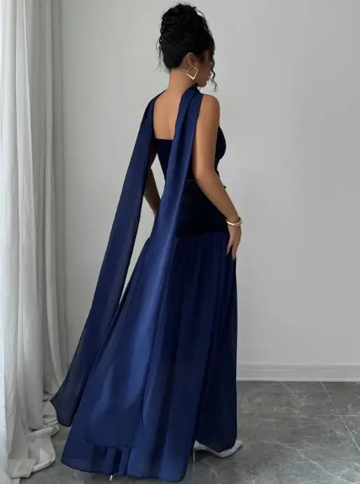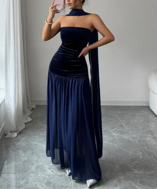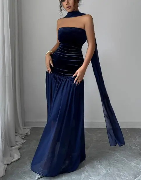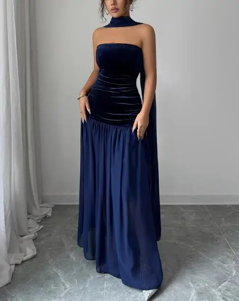 Womens Dresses Spring Summer New Elegant Temperament Solid Color Strapless Patchwork Sleeveless Casual Long Dress