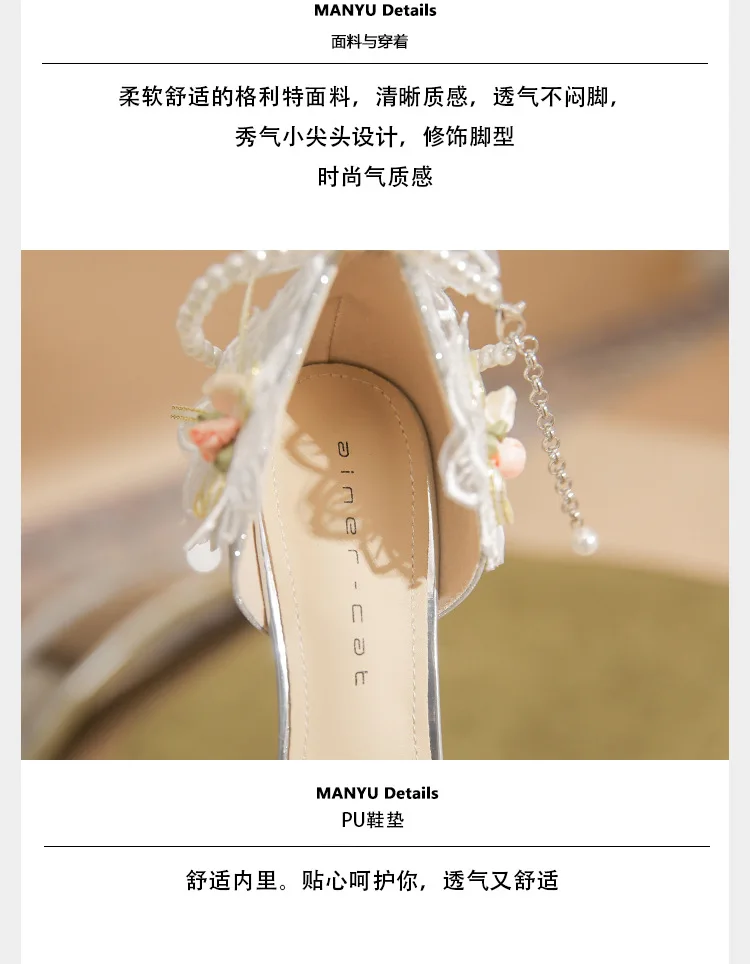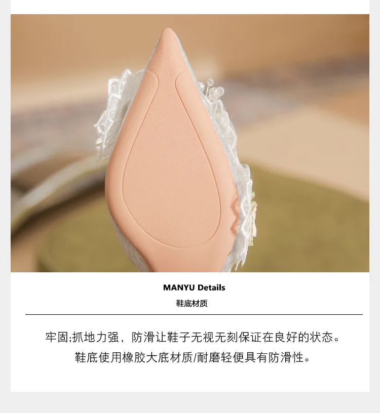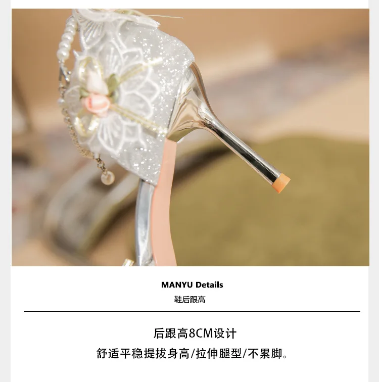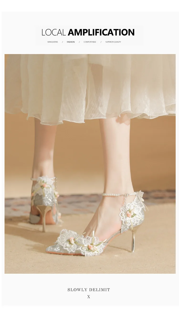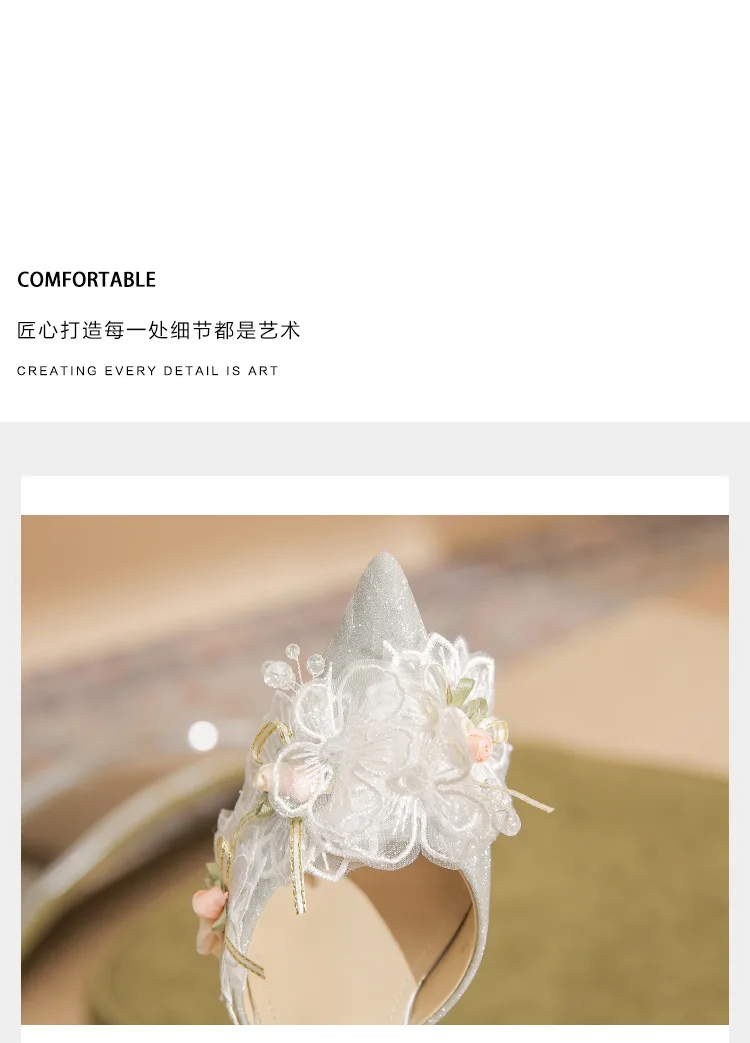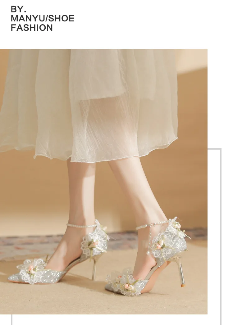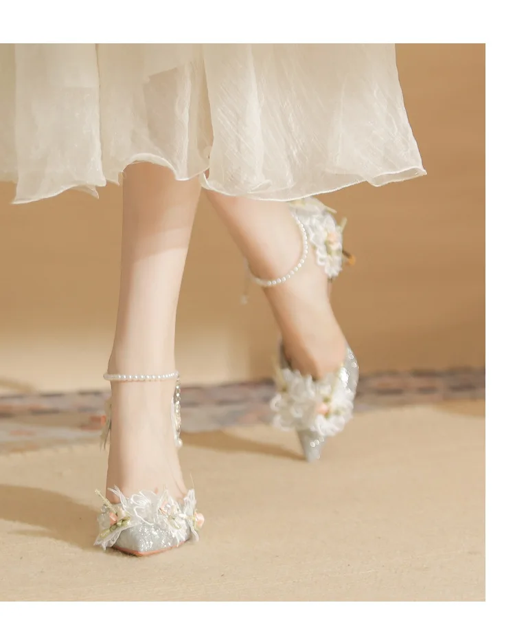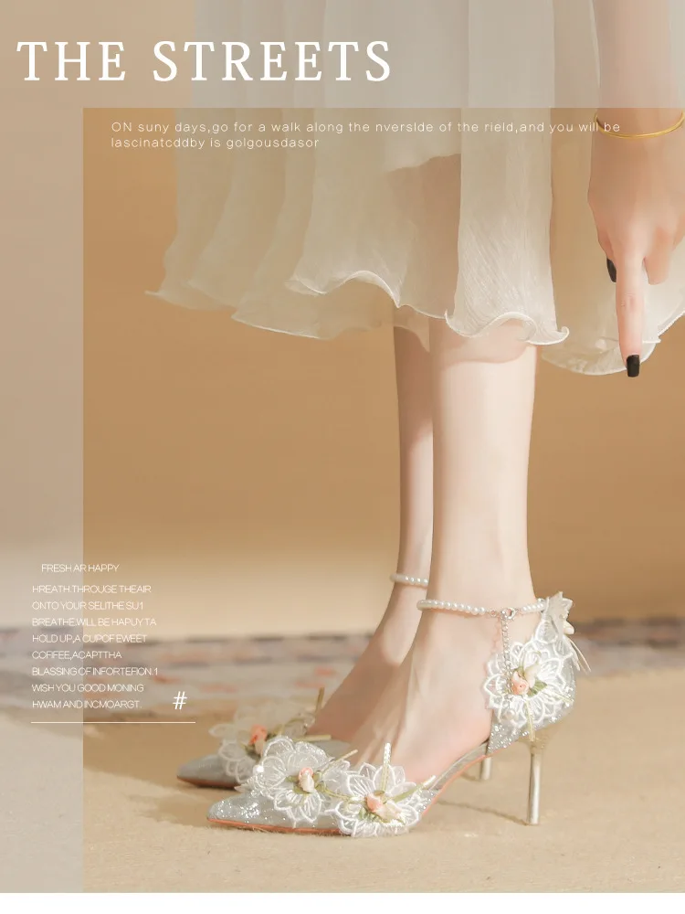 Women's Pumps Elegant Lady Evening Party Dress Prom Shoes 8CM Lace Flower Pearls Single Shoes Spring Summer Pointed High Heels