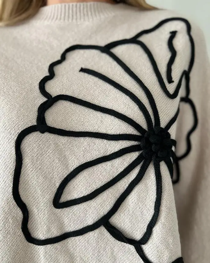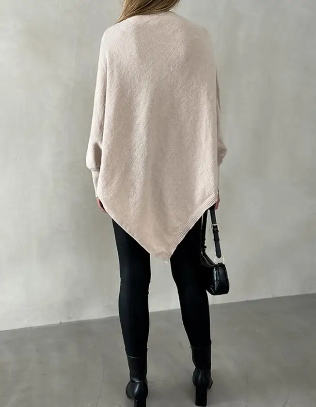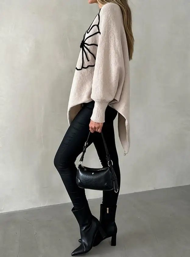 Women's Sweate Spring Autumn New Jacquard Batwing Sleeve Asymmetrical Pullover Sweater Casual Round Neck Loose Fit Top
