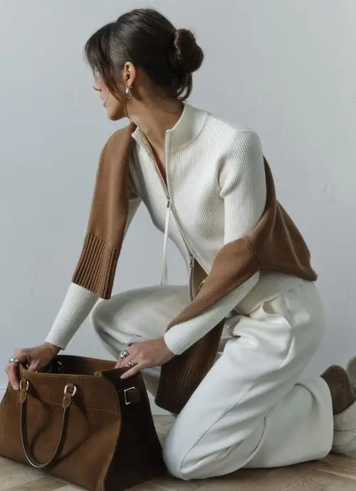 Women's Sweater Spring Autumn New Solid Color Stand Collar Slim Fit Long Sleeved Double Zipper Casual Knit Sweater Jacket
