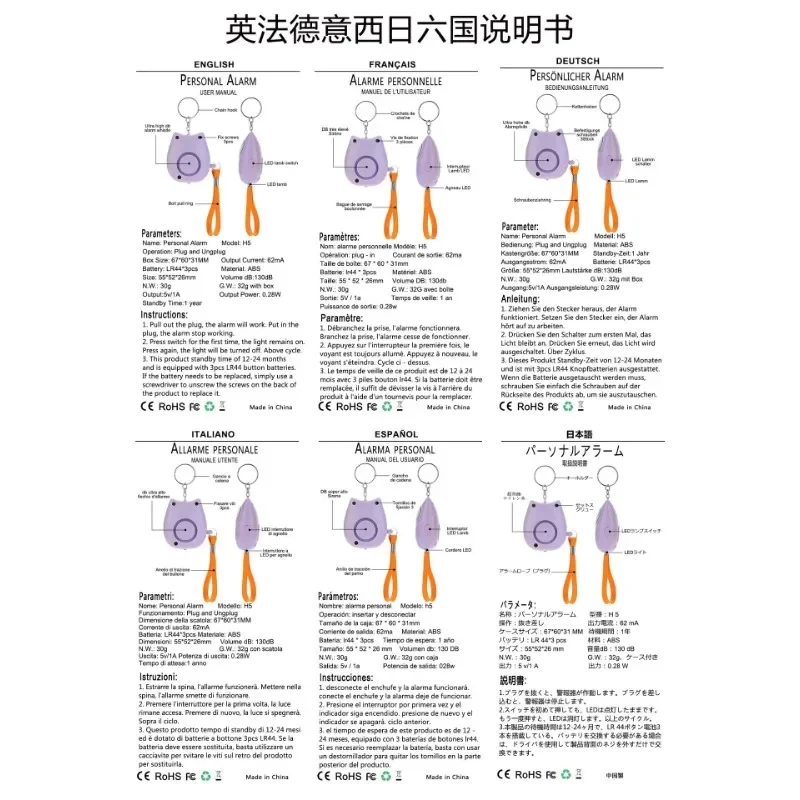 Loud Alarm for Safety: Emits a 130dB siren to attractattention and deter potential threats, ensuring your safetyin emergencies.