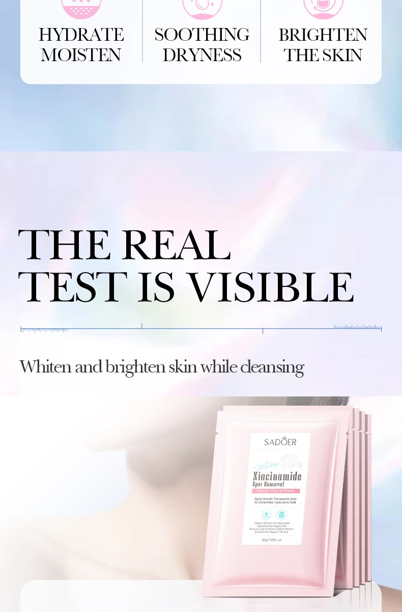 5pcs SADOER Nicotinamide Facial Masks Moisturizing Spot Removal Repair Brightening Hydrating Facial Masks Face Skin Care