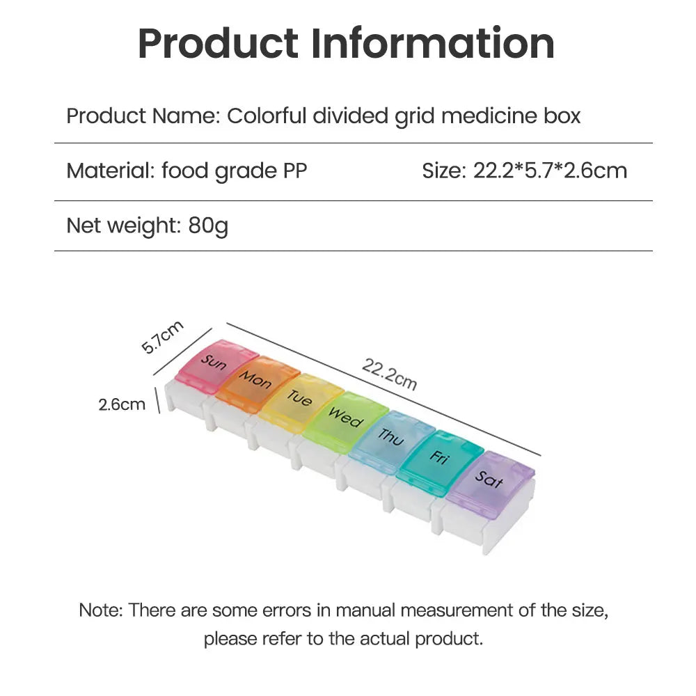 7 Days Weekly Pillbox Tablet Holder Medicine Storage Case Drug Container Pill Box Tablet Storage Box Organizer 7 Cells Pill Case