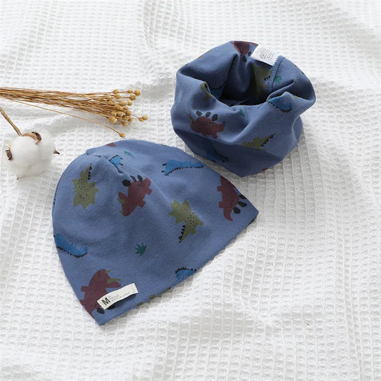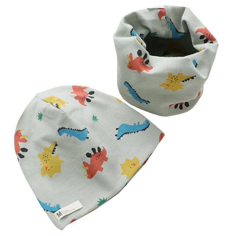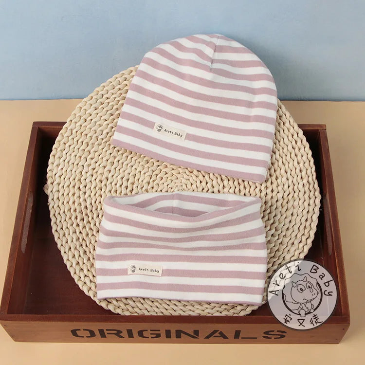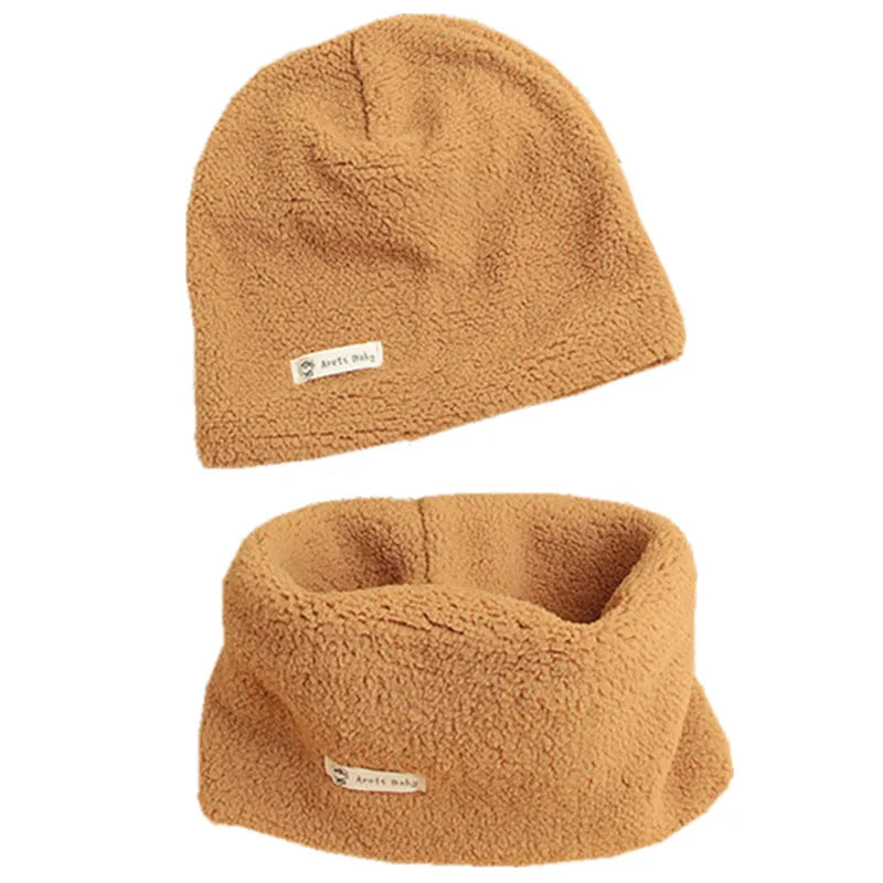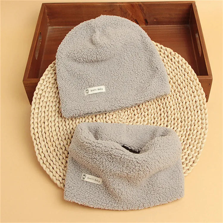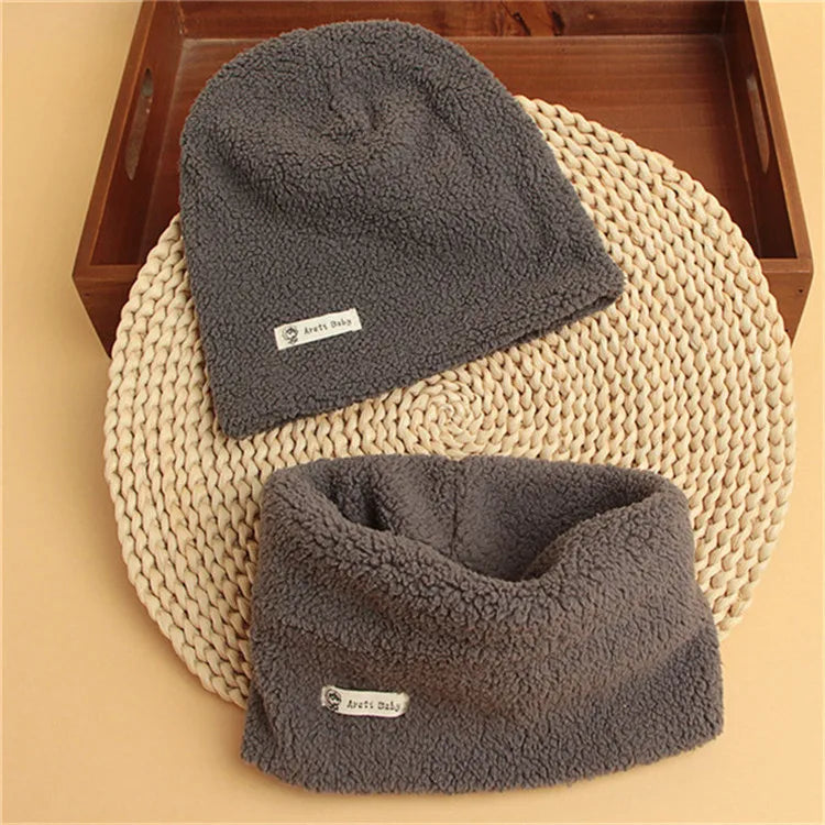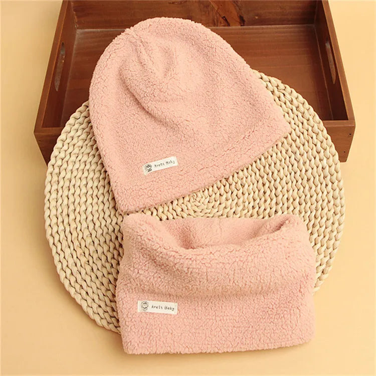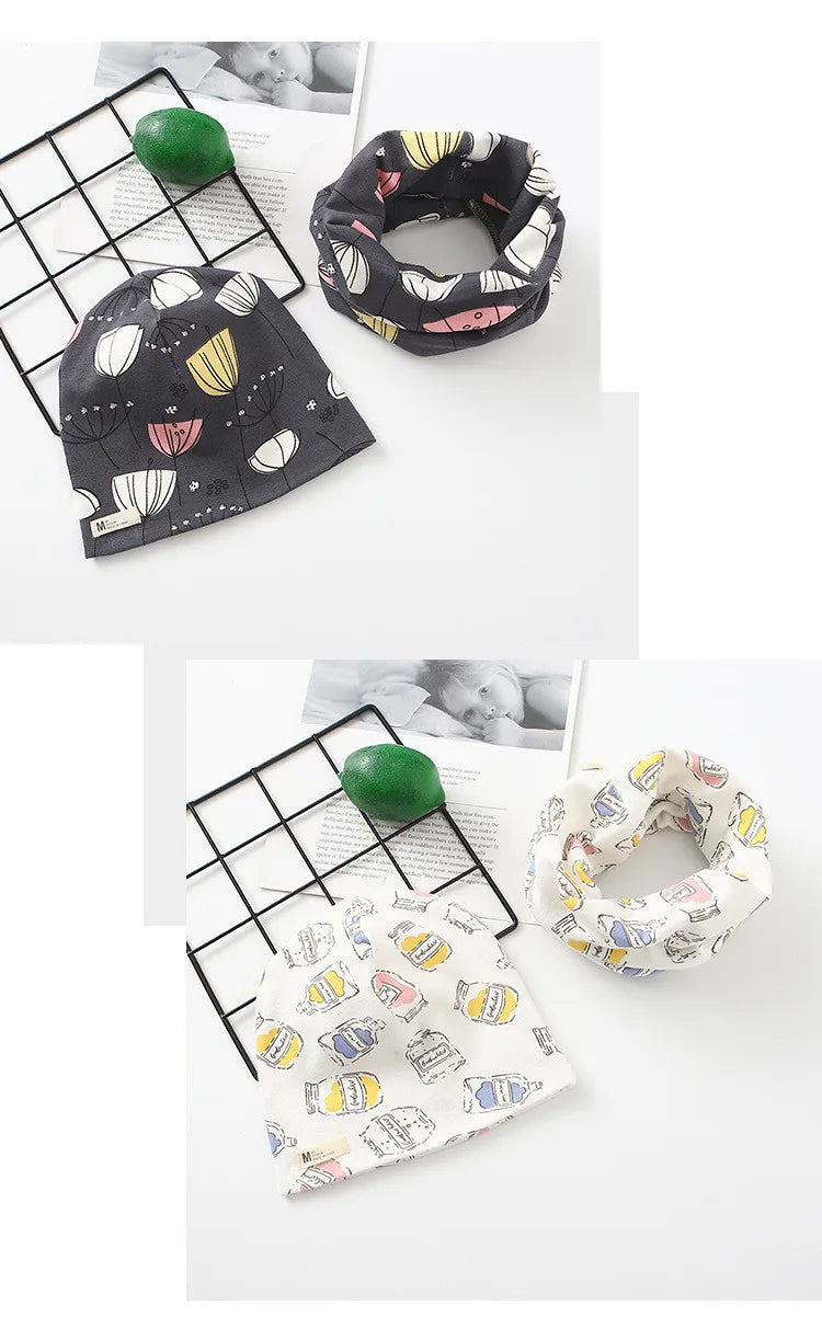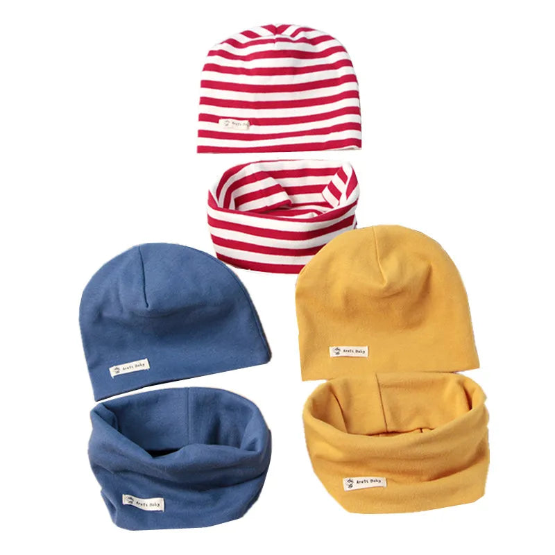 Autumn Winter Cotton Knit Children's Hat Collar 2 Set Boys and Girls Hats Set Baby Solid Color Scarf Cap two-piece