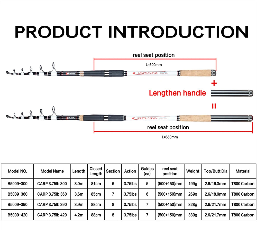Telescopic Carp Fishing Rods 3.75lbs 3.0m 3.6m 3.9m 4.2m
