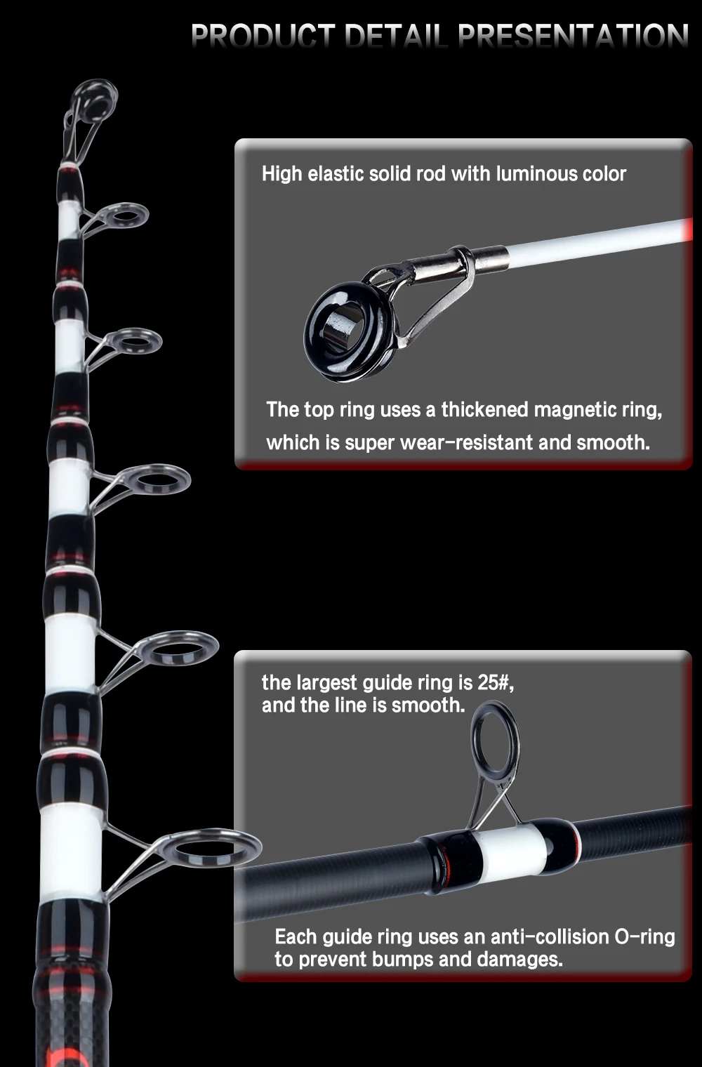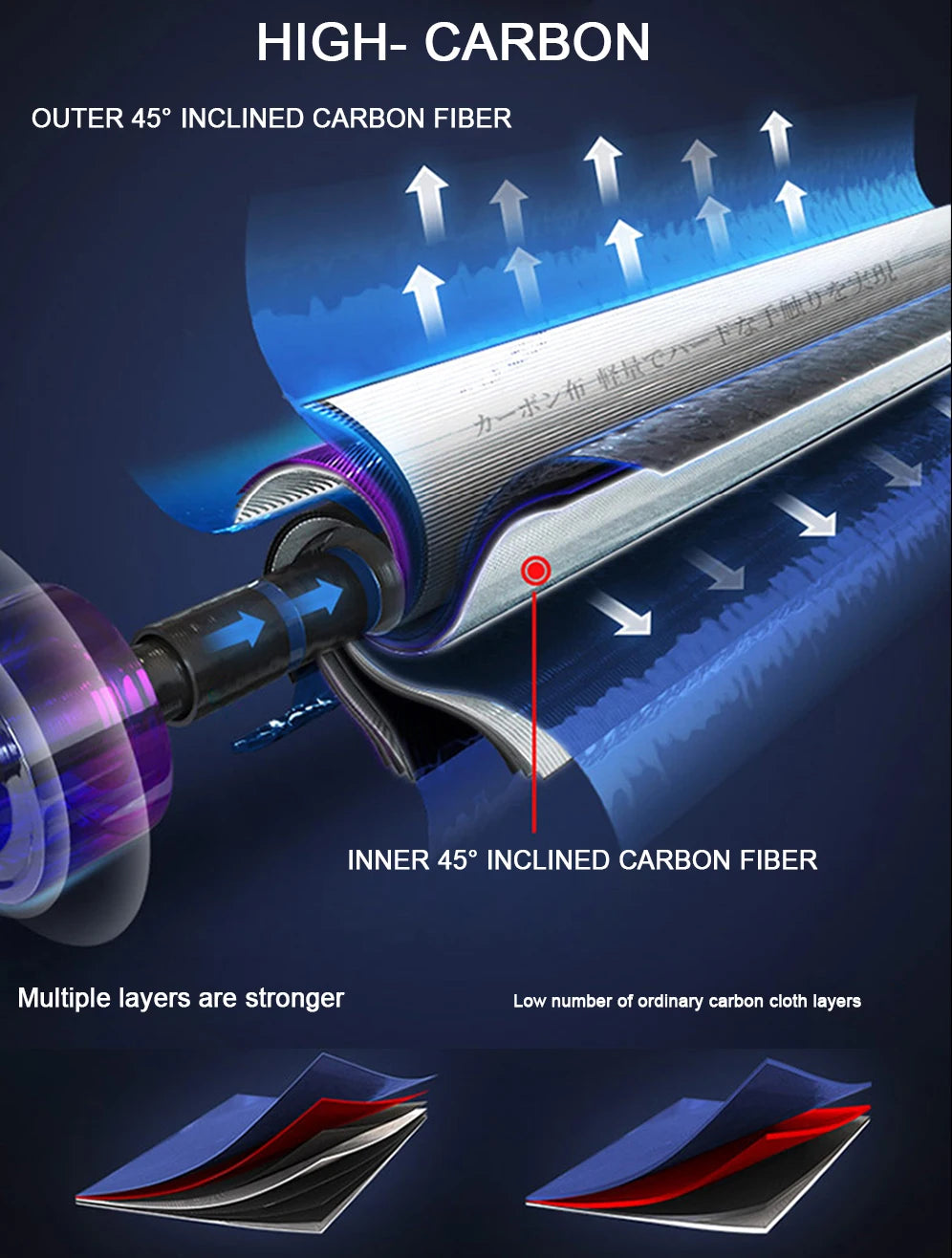 Made of selected T800 carbon fiber cloth, the waist is strong, and the fishing weight test value is as high as 6.5kg;