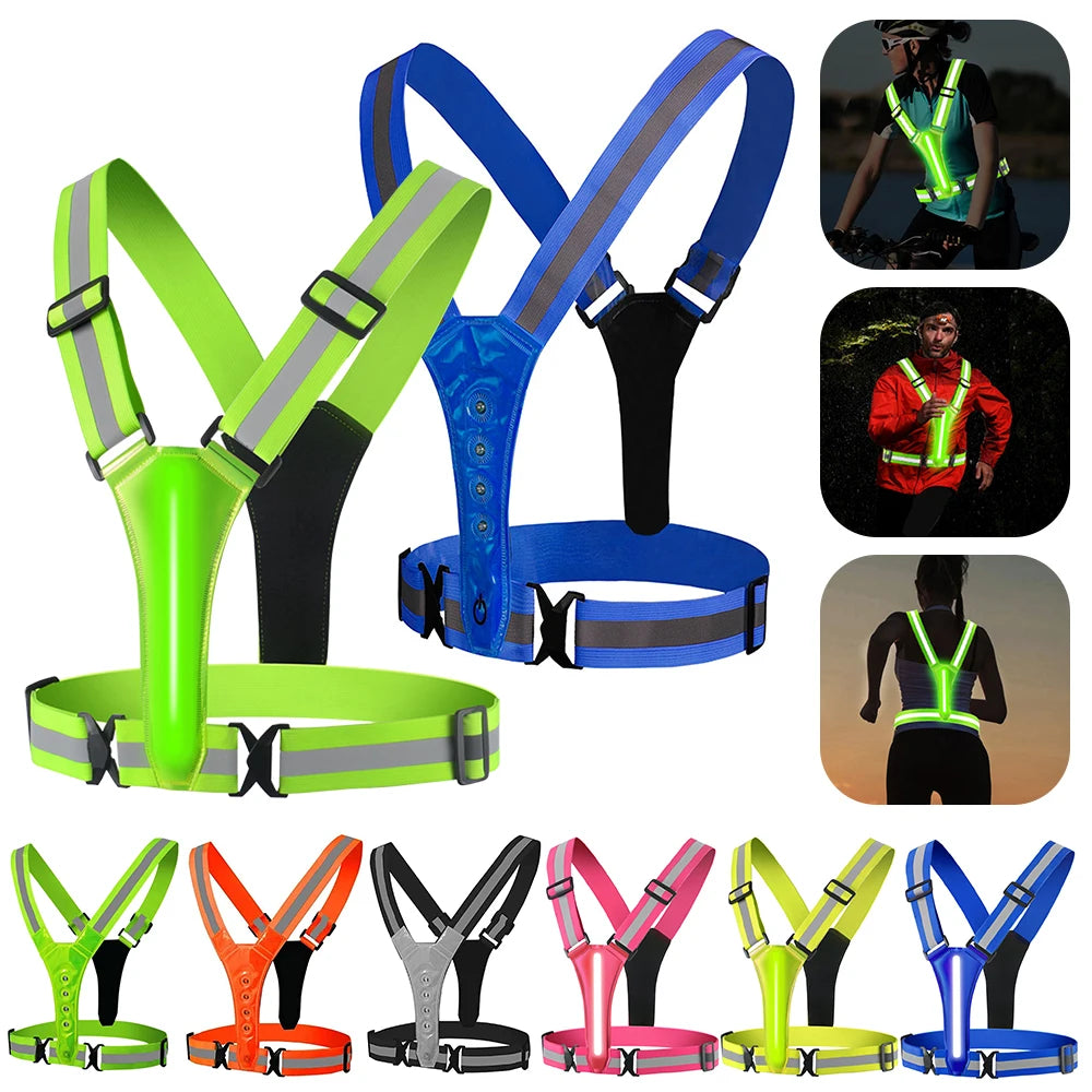 High Visibility Safety Reflective Vest USB Rechargeable LED Running Light Adjustable Cycling Vest Night Warning Work Sports Vest