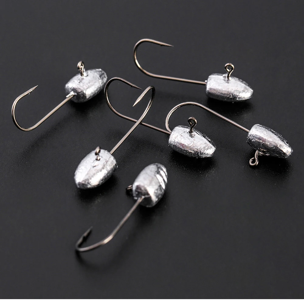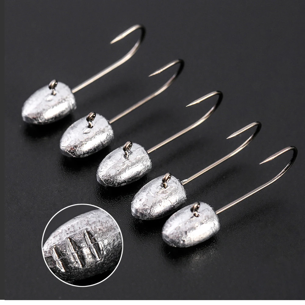 JOHNCOO 10pcs Exposed Jig Head Hook Fishing Hooks 2g 3g 5g Bait Hook Soft Bait Wom Hook