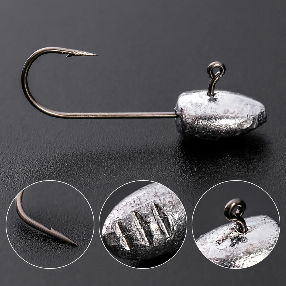 Durable to use: the head of fishing hook is made of carbon steel, which is safe and reliable to use, not easy to wear and tear, and it features good corrosion protection performance, durable and practical to be applied for a long timeEasy to fish: the jig head jig hook is designed in sharp tip, which makes it easy for you to insert the soft bait deeply, increasing the chance of catching fishes, and the barb of jig hook can prevent fishes from sliding or running awayGreat for fishing: these jig fishing hooks are suitable for fishing in streams, ponds or some other places where you can fish, regardless of freshwater or saltwater, and the fishing jig hooks would be good gifts for your parents, friends and relatives