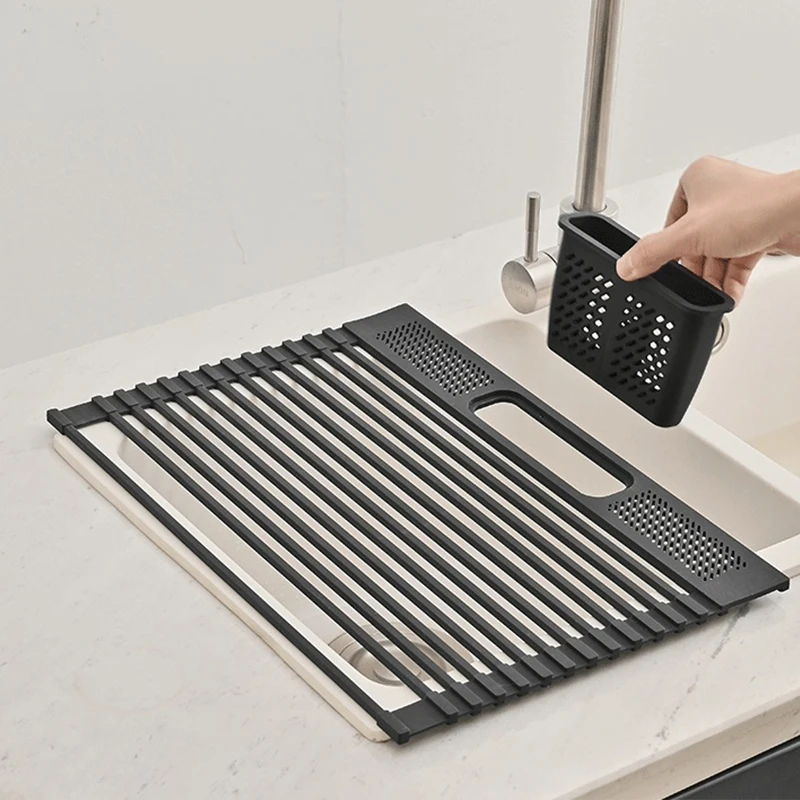 Kitchen Rolling Dish Drainer Roll Up Dish Drying Rack Over The Sink kitchen accessories,storage organization Foldable bowl shelf