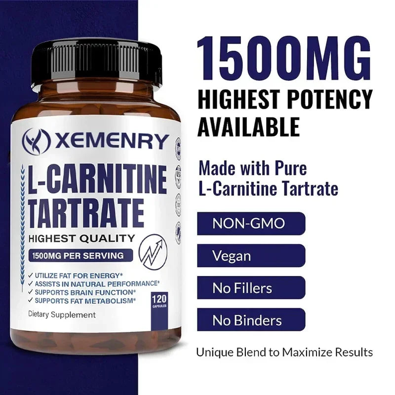 L-Carnitine Tartrate Premium Capsules 1500 mg - Natural Energy Production, Supports Metabolism