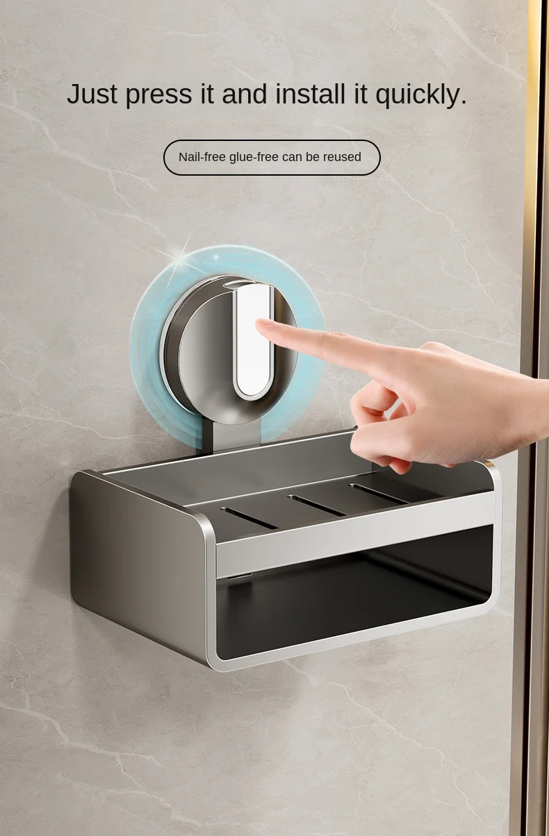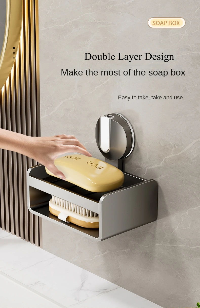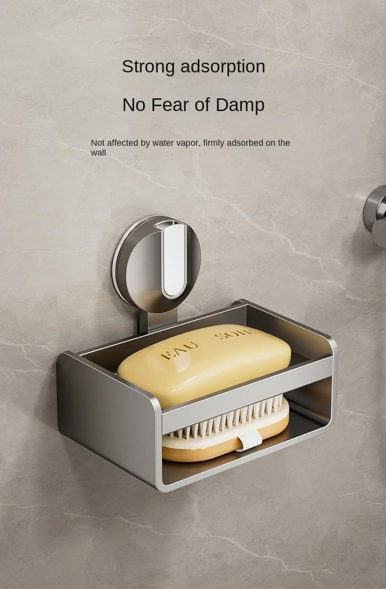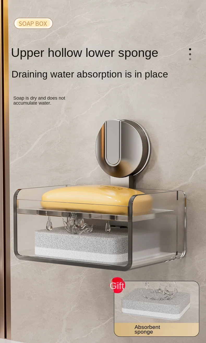 No-Drill Bathroom Soap Holder - Suction Cup Wall Mount Organizer Double Drainage, Holds Soap & Sponge, Space-Saving Storage Rack