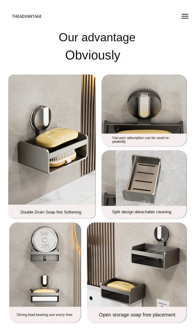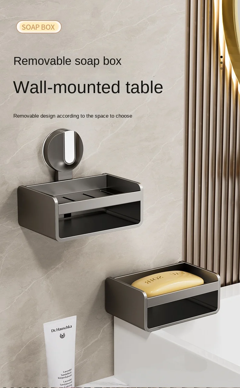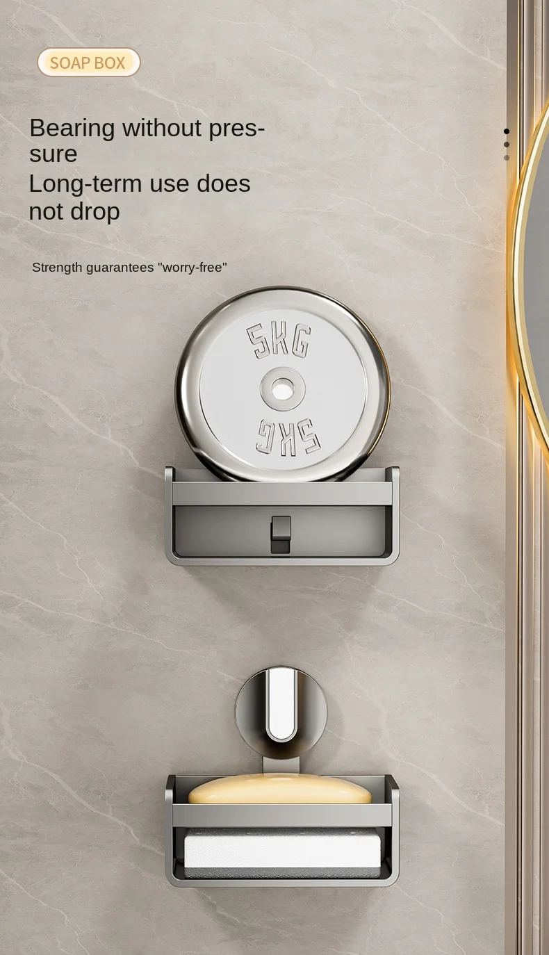 No-Drill Bathroom Soap Holder - Suction Cup Wall Mount Organizer Double Drainage, Holds Soap & Sponge, Space-Saving Storage Rack