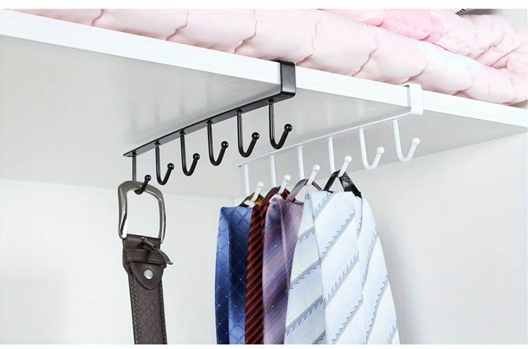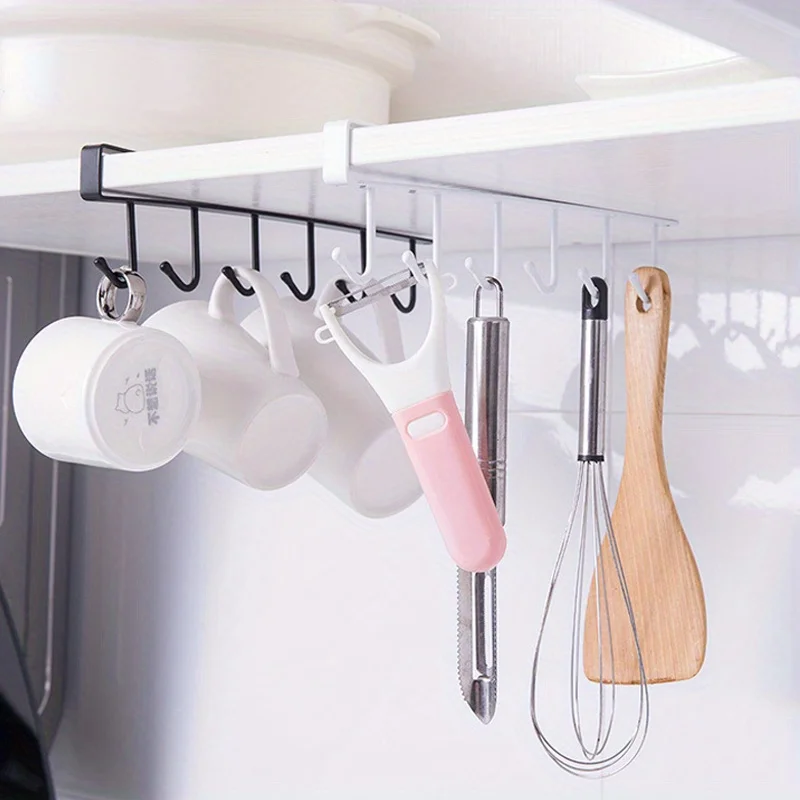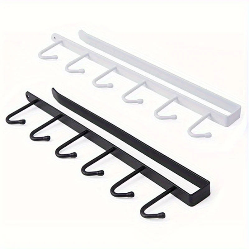 Iron 6 Hooks Storage Shelf Wardrobe Cabinet Metal Under Shelves Mug Cup Hanger Bathroom Kitchen Organizer Hanging Rack Holder