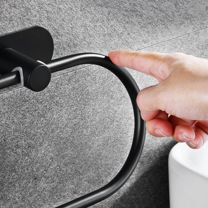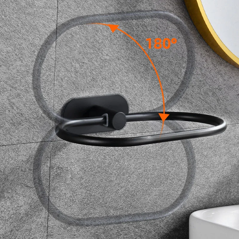 Stainless Steel Towel Holder Self-adhesive Bathroom Towels Rack Black Washhand Hanger Ring Rail Bar Kitchen Storage Accessories