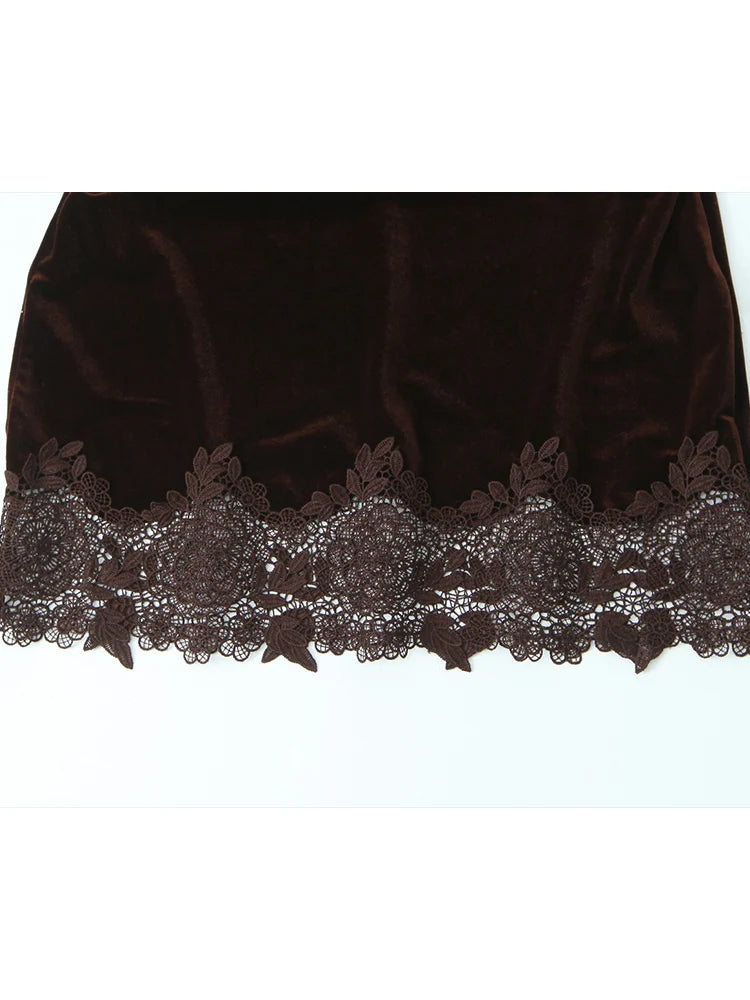 TFMLN Elegant Solid Velvet Dress For Women Chic Lace Spliceing Half High Collar Slim Sleeveless Short Dress Fashionable Ladies