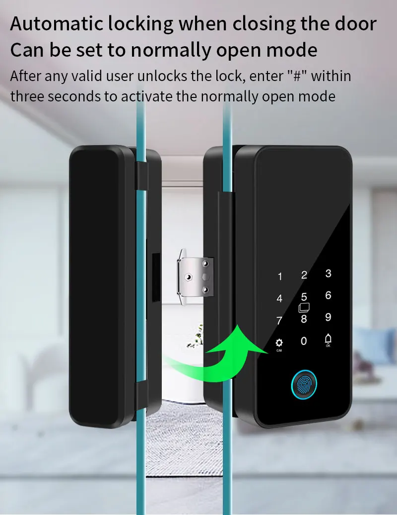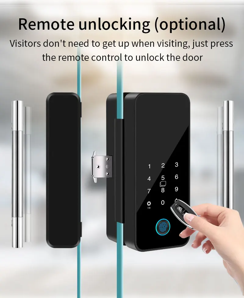 Tuya APP Glass Door Fingerprint Lock Bluetooth Smart Biometric Electronic Office Glass Door Lock 13.56Mhz RFID IC Keyless Unlock