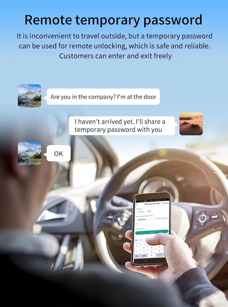 2. Multiple unlock method: Fingerprint, code, card or APP, remote control.