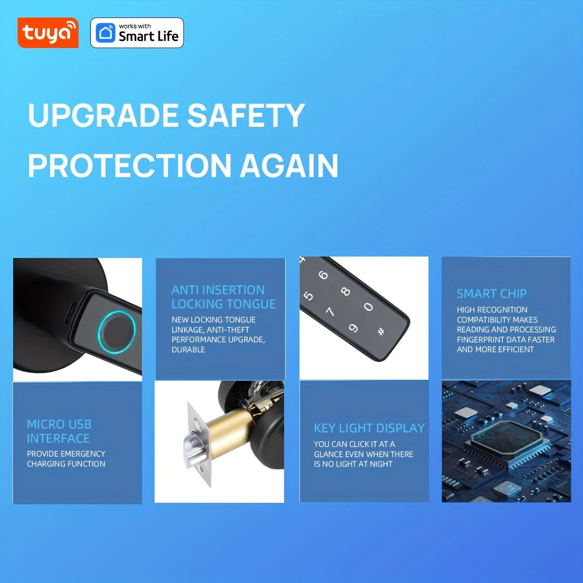 Tuya Smart Door Lock Fingerprint Password Key App 4-in-1 Unlock Electronic Digital Handle Lock Apartment Home