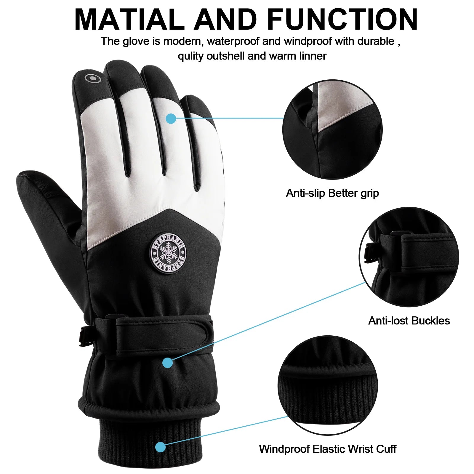 Waterproof Ski Gloves Thermal Touchscreen Snowboard Gloves Warm Winter Snow Gloves Windproof Bike Cycling Gloves Fits Men Wome