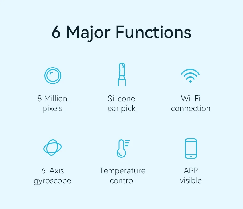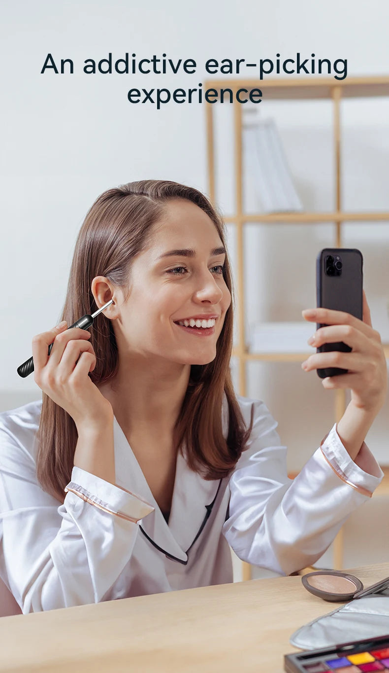 1080P HD Ear Camera: The earwax removal kit is equipped with 6 LED lights and a 1080P HD camera to help you see and clean earwax effectively. When in use, the earwax removal camera's temperature is close to human body temperature. Suitable for adults, children, pets, check teeth, nose, throat, scalp root, and other body parts.