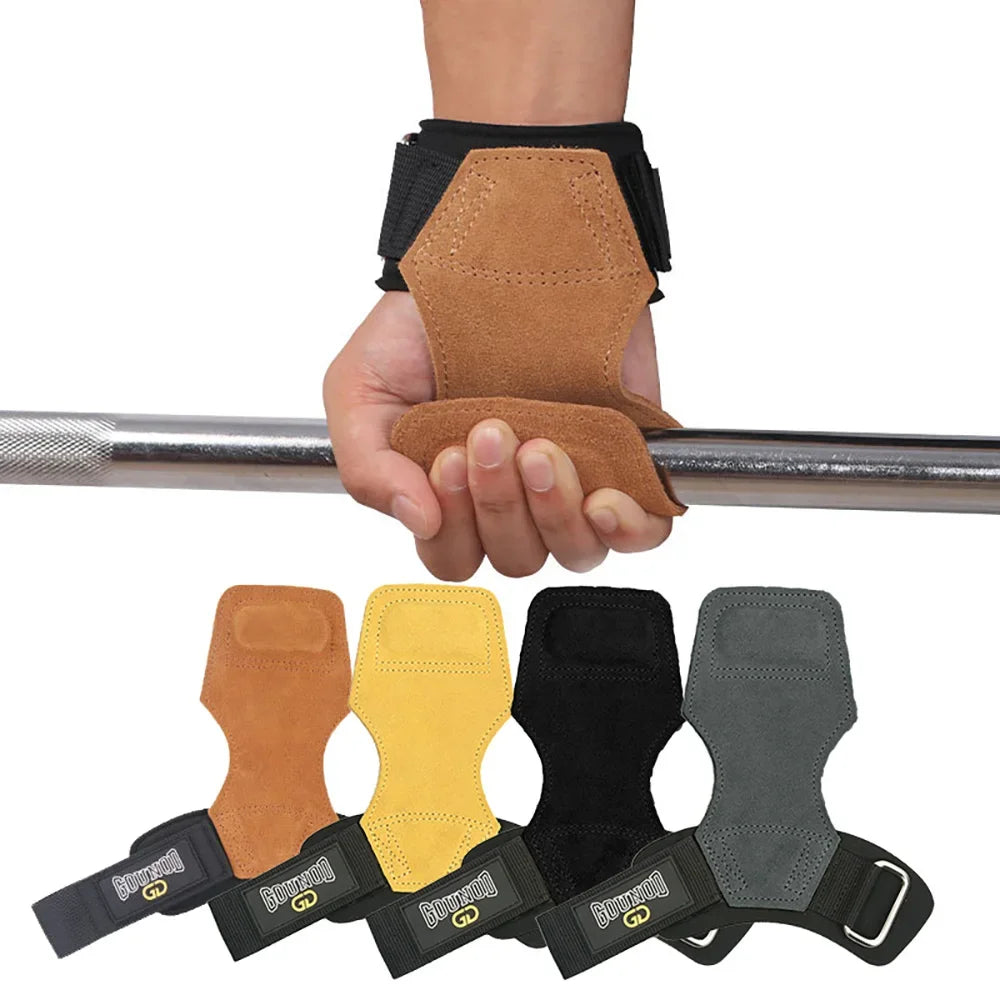 Wrist Straps for Weightlifting Double Layers Cow Leather Gloves Women Men Deadlift Maximum Grip Support Bench Press Pull-up F18