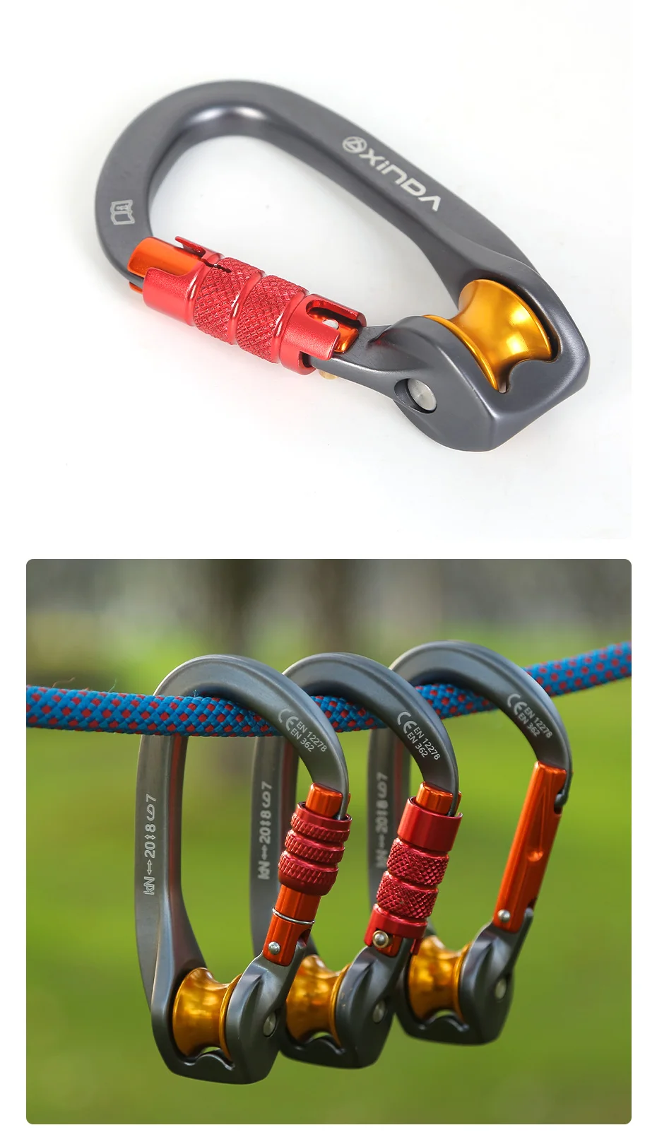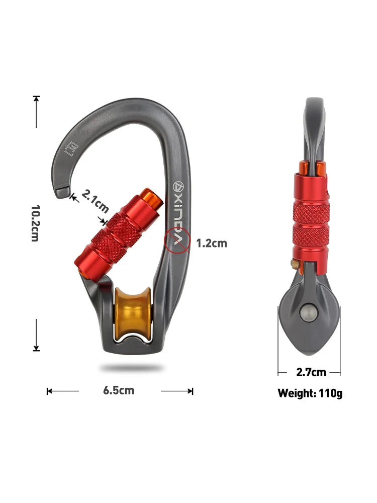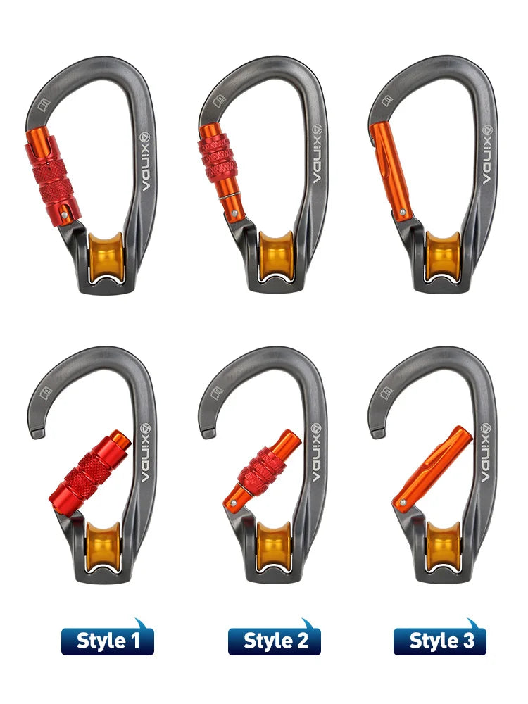 Xinda Outdoor Pulley Carabiner Mountaineering Safety Buckle Lock Cross Strop Equipment Bearing Pulley Hook